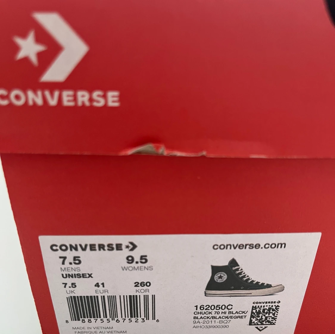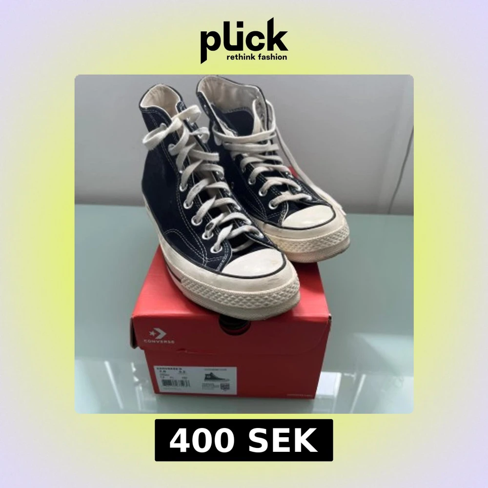 Klassiska Converse Chuck 70 Hi i svart canvas med vita detaljer och snörning.