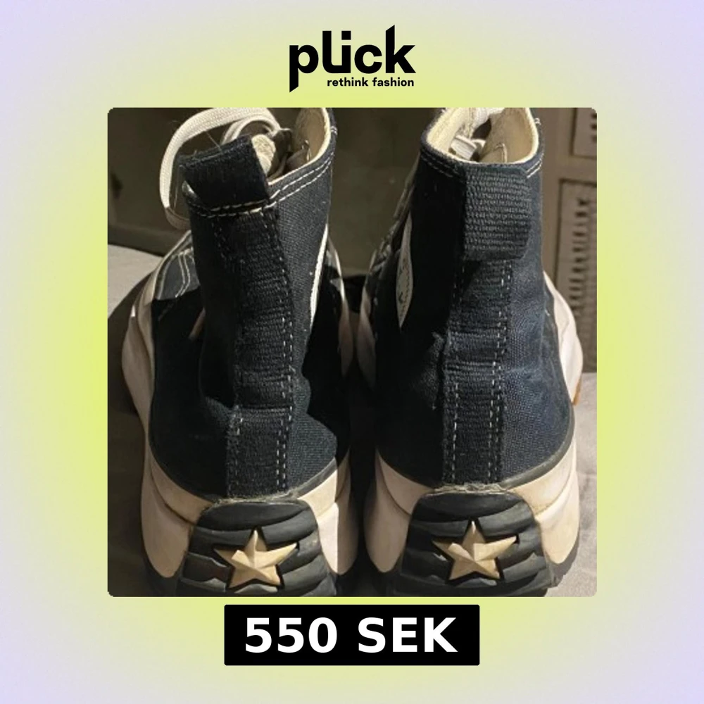 Säljer ett par Converse Run Star Hike i svart canvas med vita kontrastsömmar och grov vit sula med stjärndetalj baktill. Klassisk Chuck Taylor All Star-logga på sidan och vita snören. Snygg high-top modell med rund tå och plattformssula. Har ändats andvänts i en säsongs, sen har de bara stått i garderoben