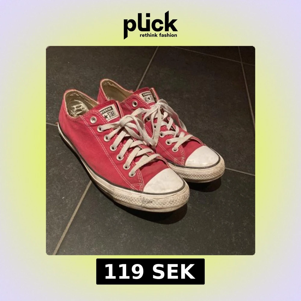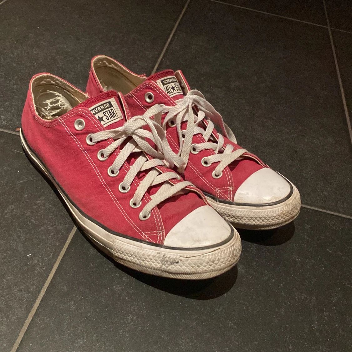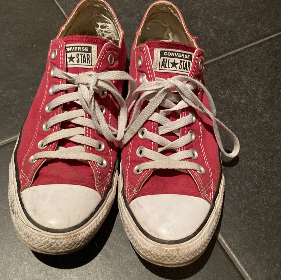 Klassiska röda Converse All Star sneakers med vit tå och vita snören. Riktigt sköna och feta. Storlek 44