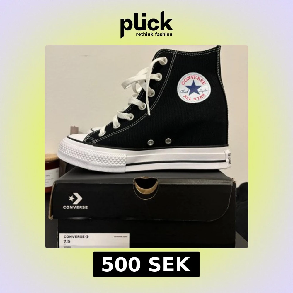 Helt nya Converse, aldrig använda. Säljes på grund av fel storlek. Storlek 38. Modell: Converse Chuck Taylor All Star Wedge Hi.