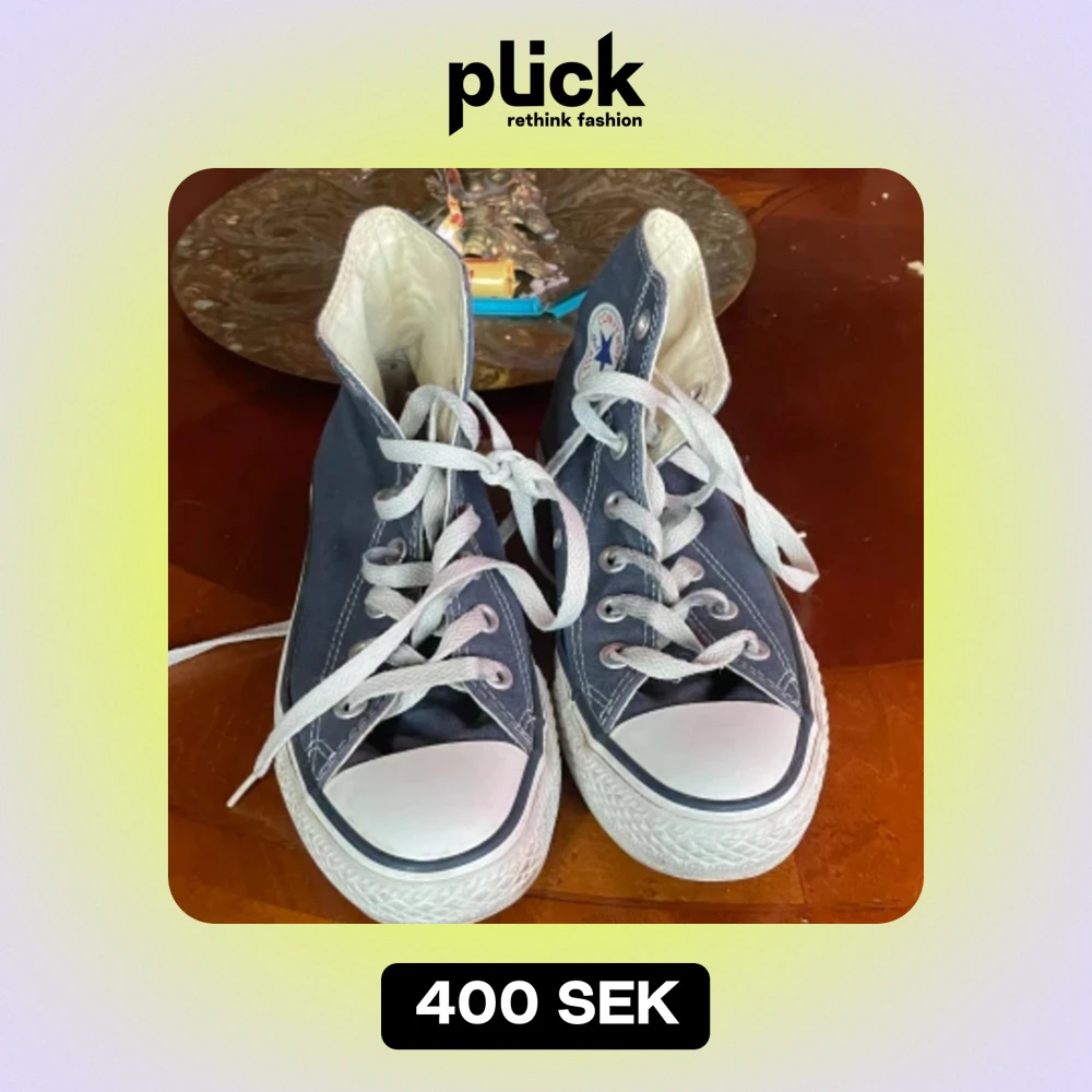Jättefina blå Converse som är i bra skick bara lite smutsiga skosnören de står att de är storlek 36,5 men men jag har egentligen 37 38 och dem passar mig men de är 23cm jag köpte dem för i 800kr priset går att diskutera😊