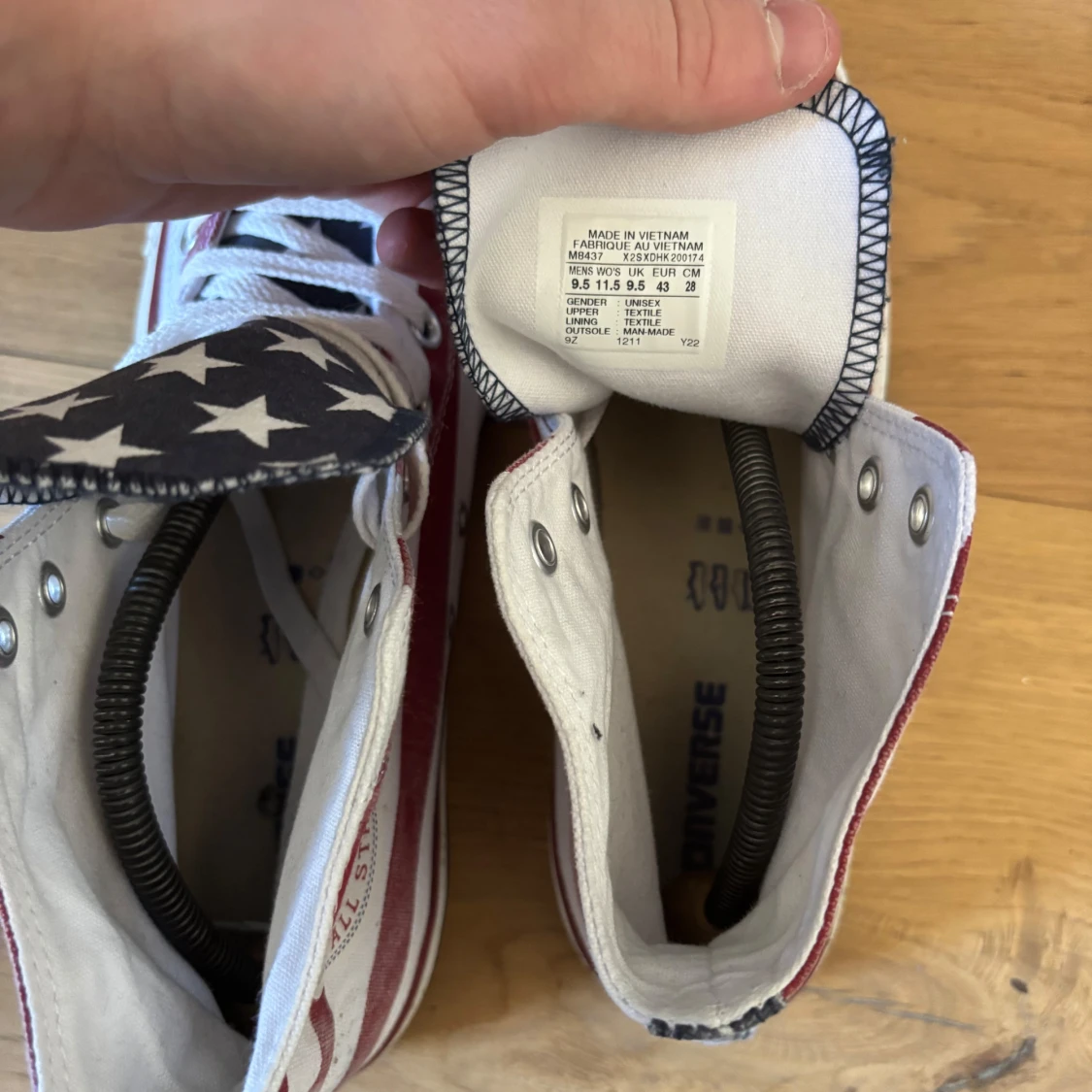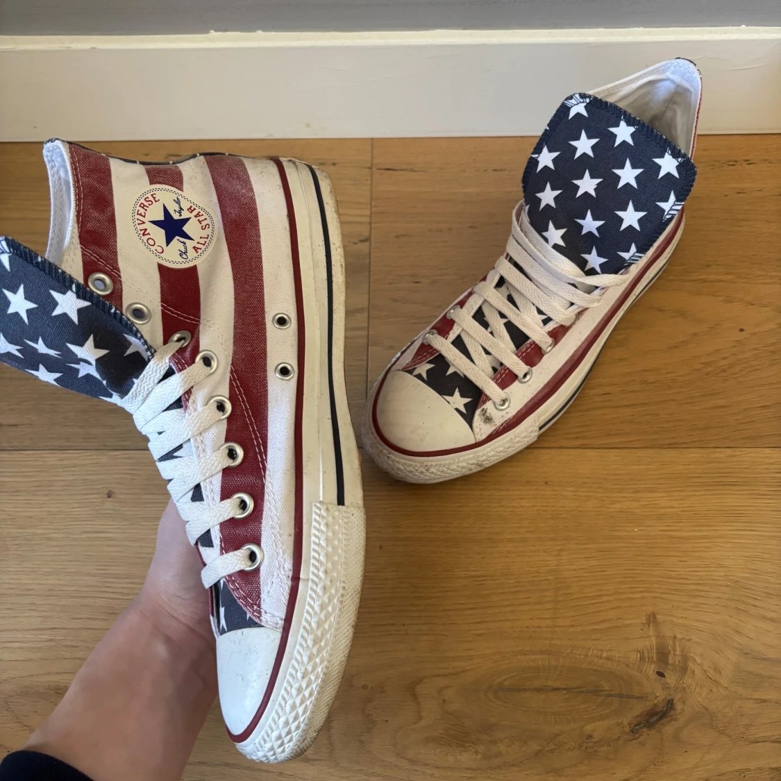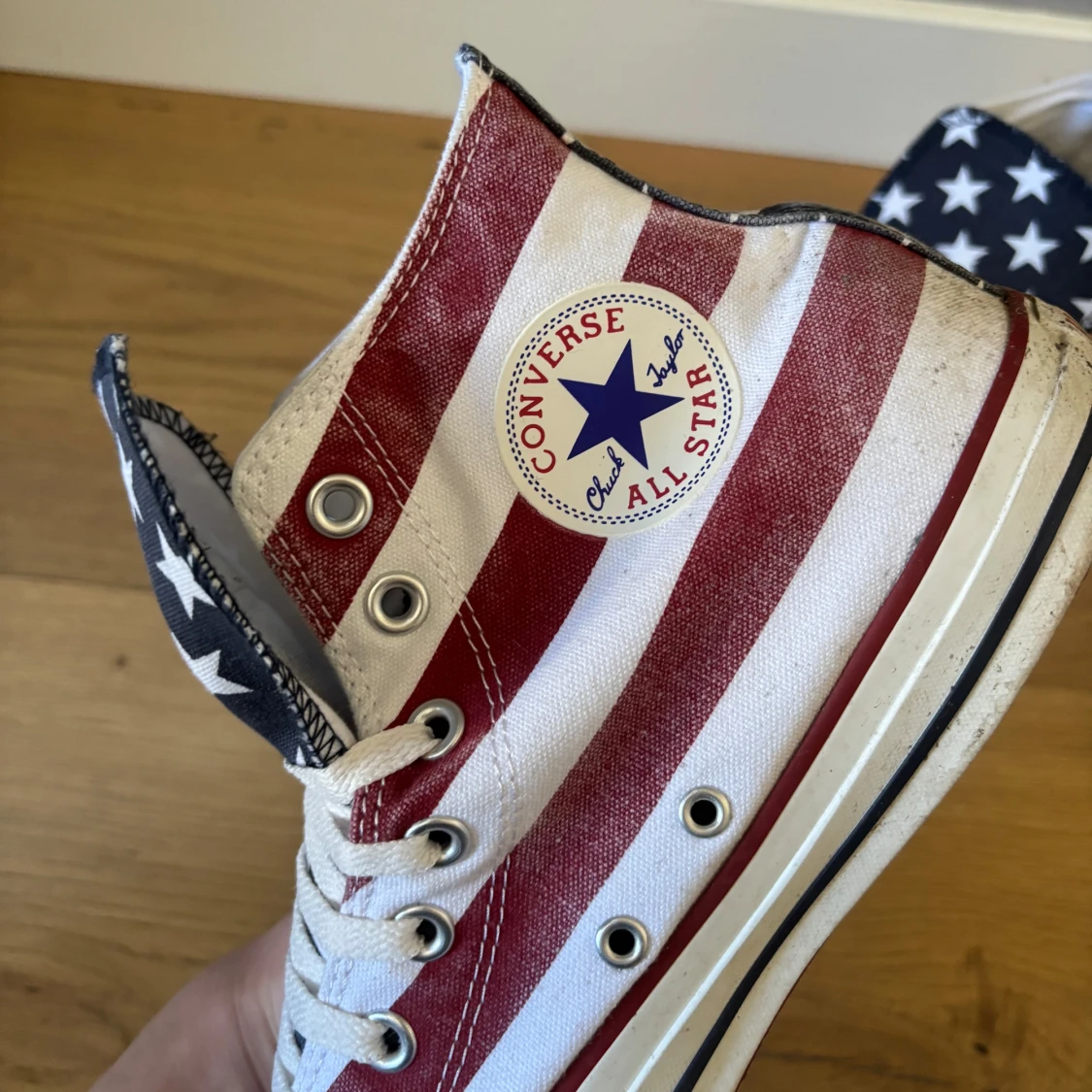 Tja! Säljer mina riktigt schyssta och unika Converse i storlek 43. Köpte dem helt nya och bara använt dem ett fåtal gånger så dem är bara lite smutsiga. Bara att höra av sig vid frågor eller liknande✌️