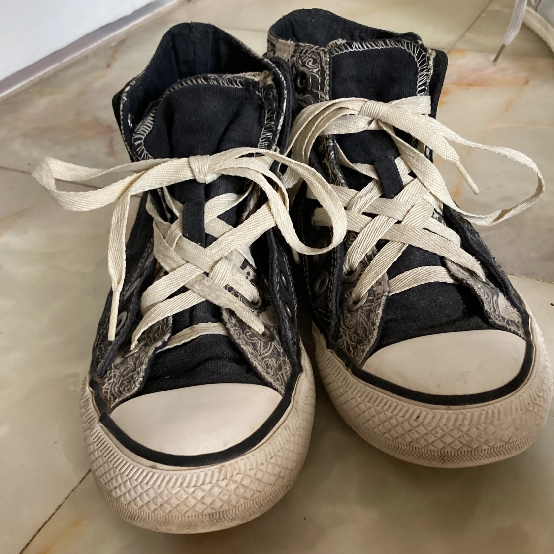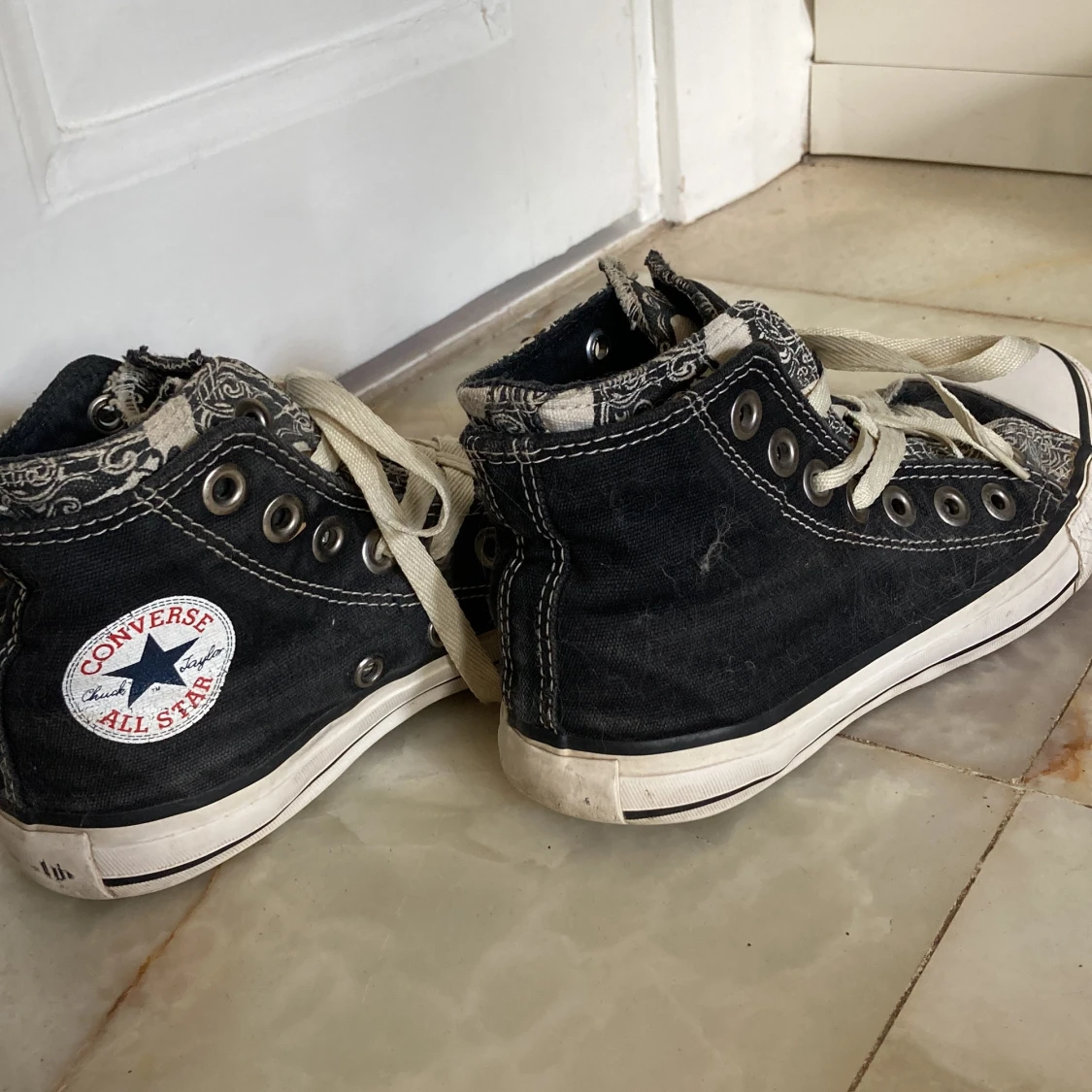 Converse skor storlek 35. Tror även de skulle kunna passa 36. Är sydda så att det ser ut som två skor i ett. Bra skick! Frakt tillkommer!! 💕