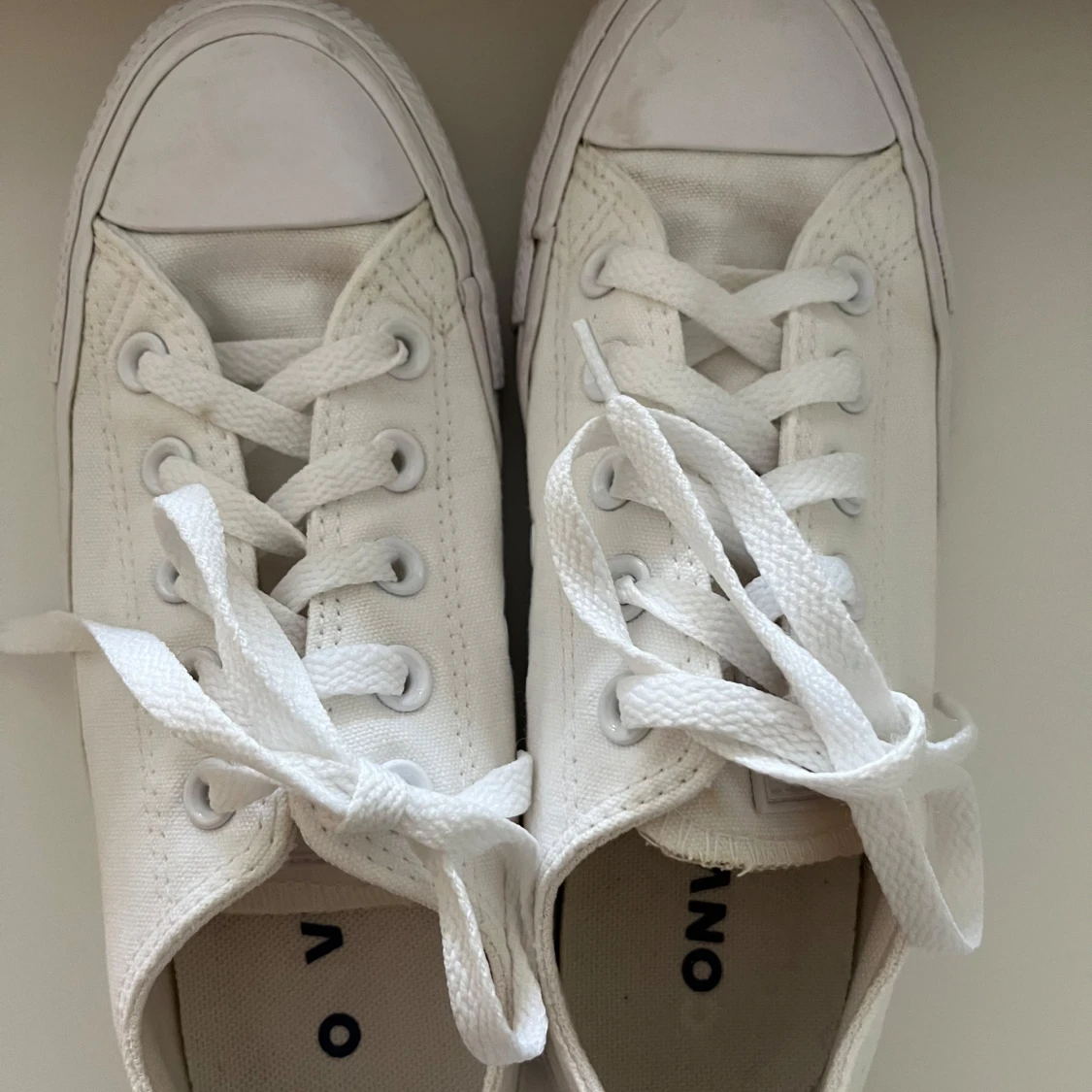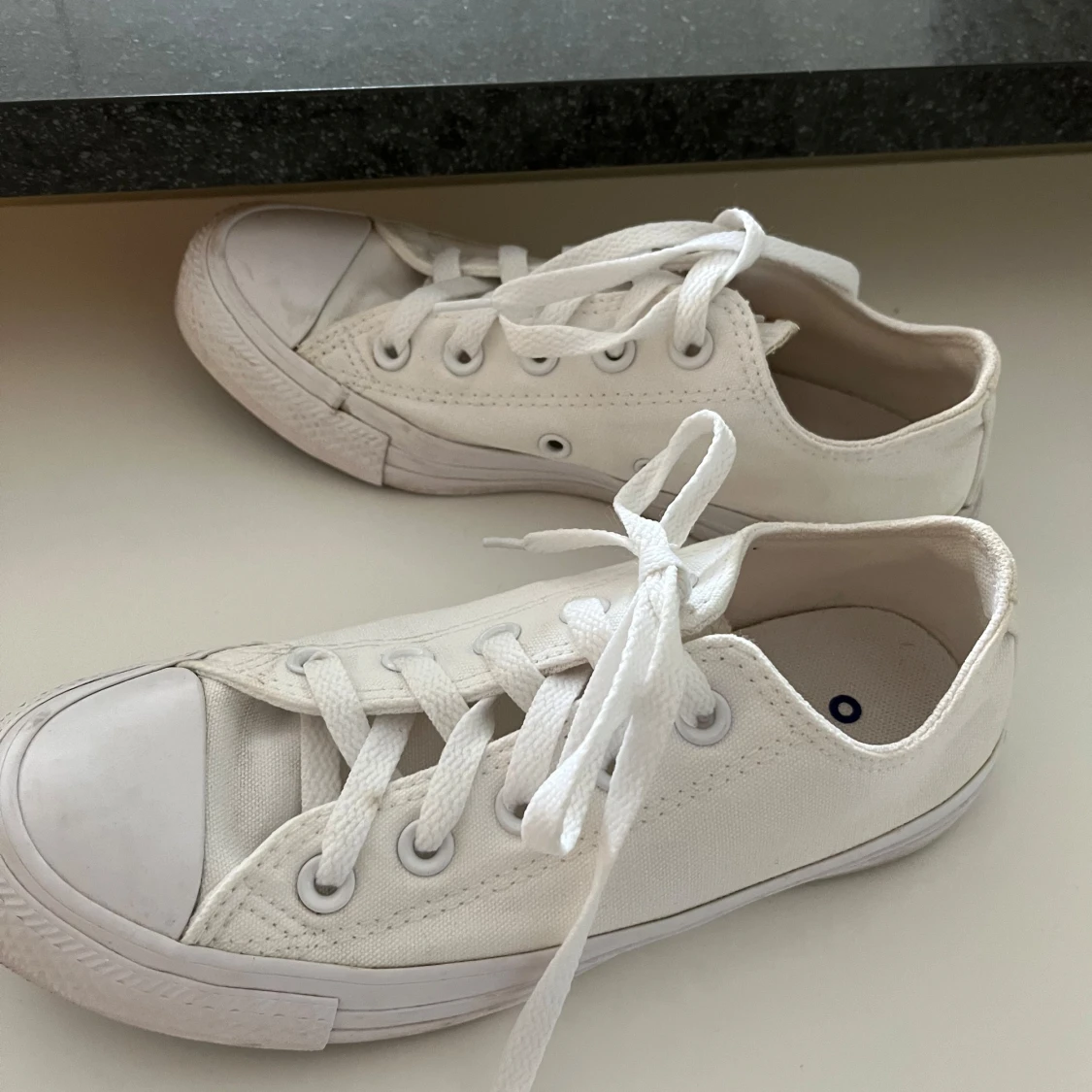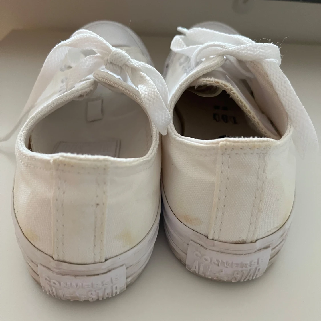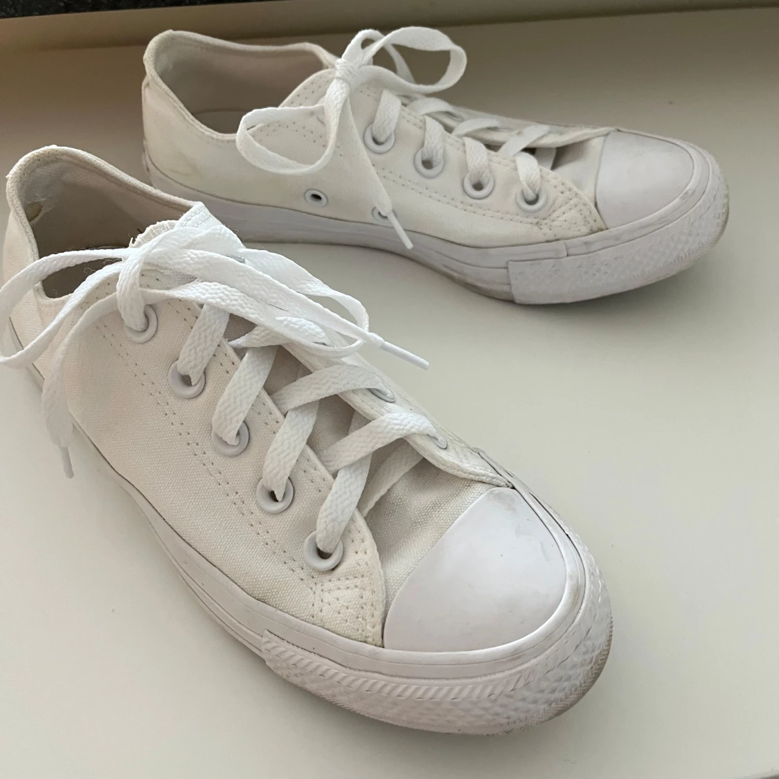 Ett par klassiska vita Converse All Star sneakers i storlek 36. Perfekt för en avslappnad och stilren look. Skorna är i använt skick, se bilder.