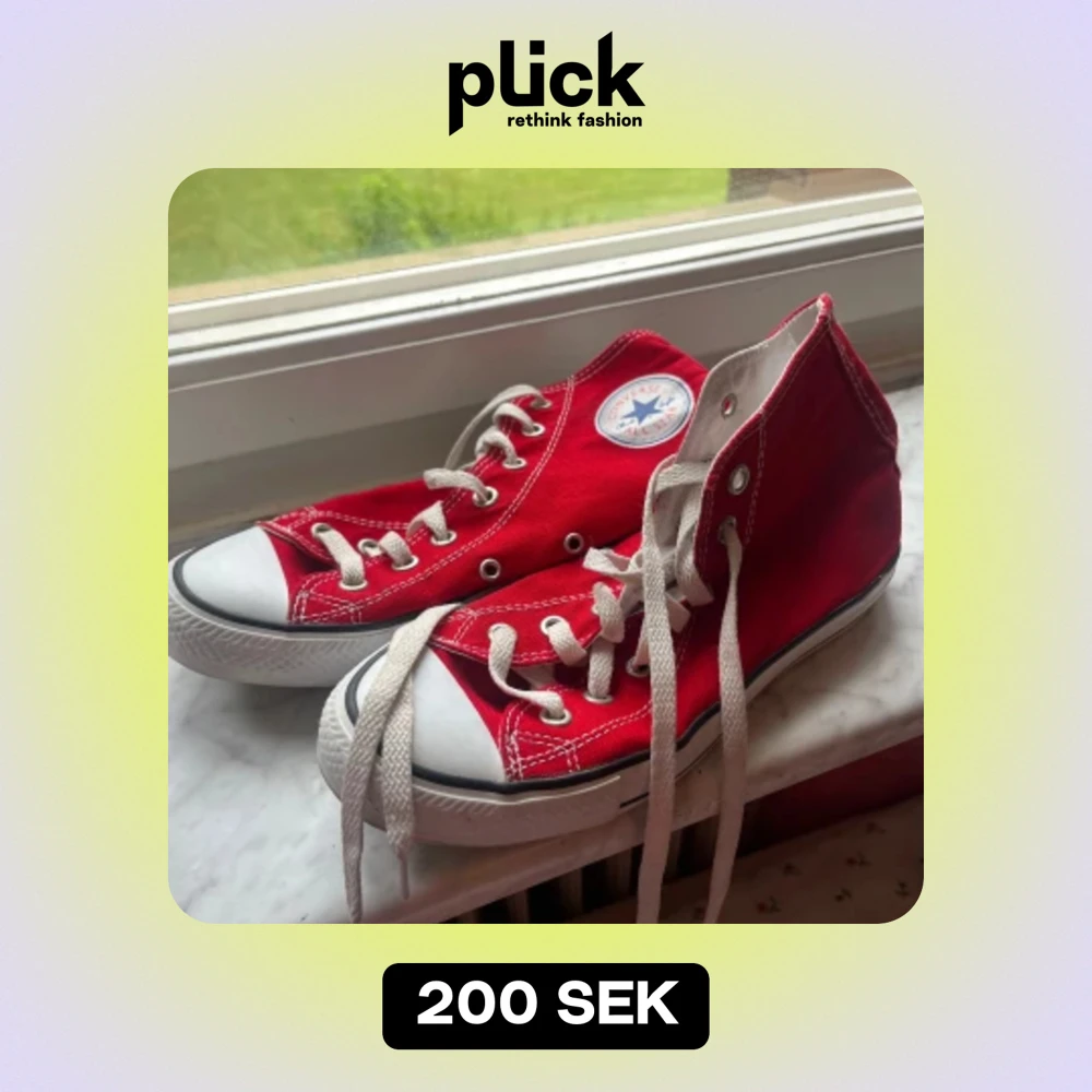 Snygga röda all star converse i ganska bra skick, som kommer inte till användning längre.