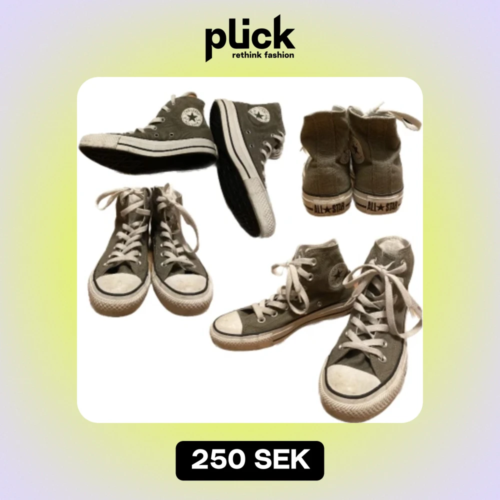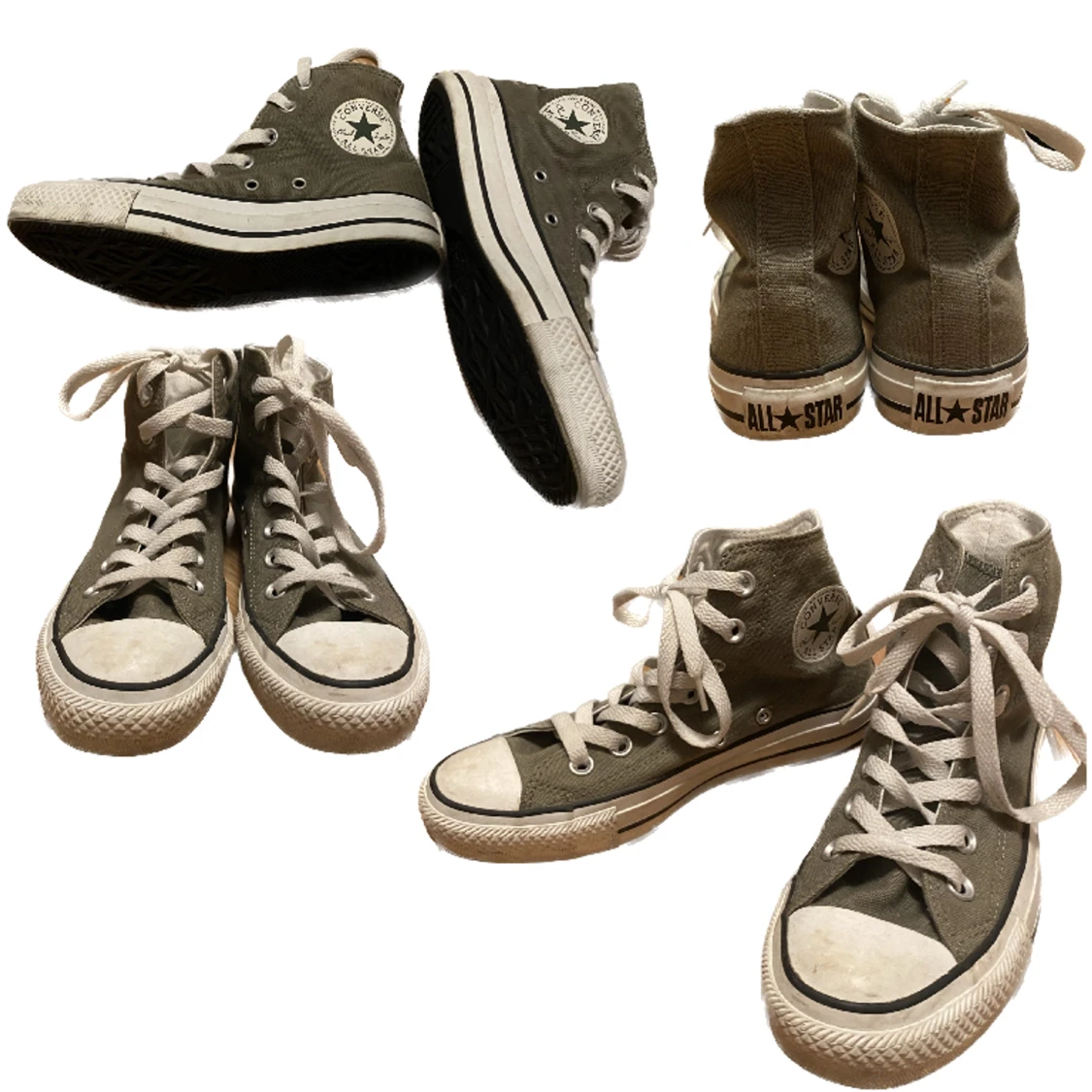 Militär/olive gröna Converse! Ganska använda men ändå bra skick 7/10 ish. Endast missfärgning på sulan/det vita