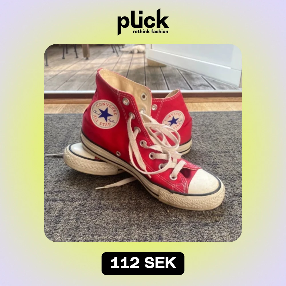 Röda converse i bra skick som jag inte använder längre för dem är lite för små! Lite smutsiga men det går att tvätta bort. Storlek 37 :)