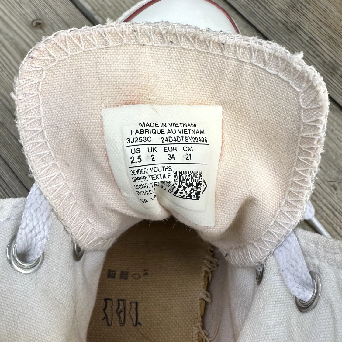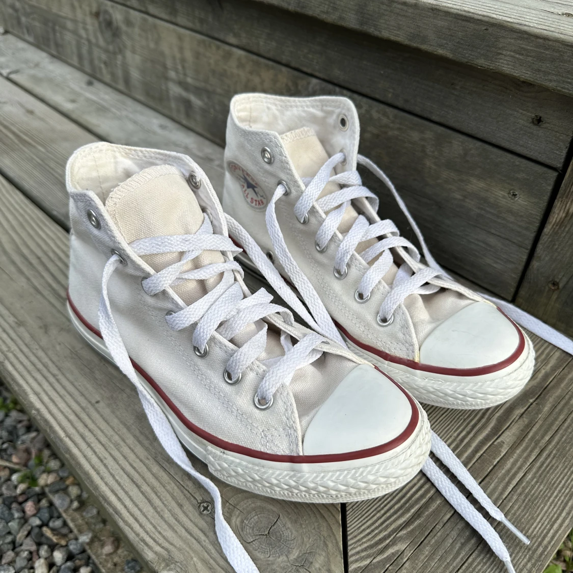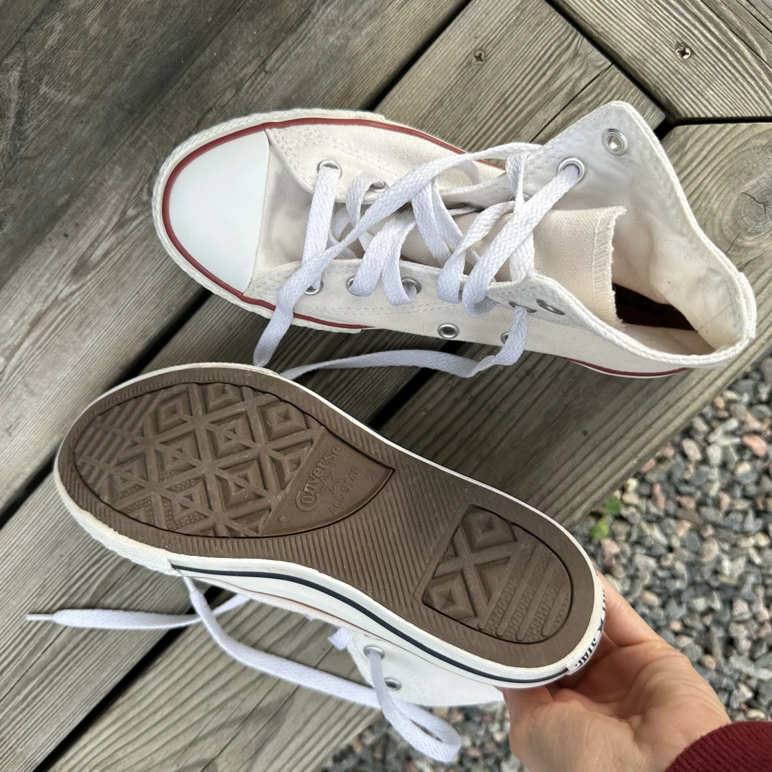 Säljer fina beigea Converse i storlek 34, väldigt bra skick, nästan nyskick då knappt använda