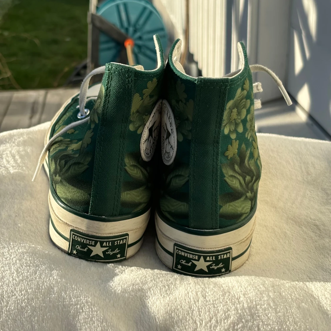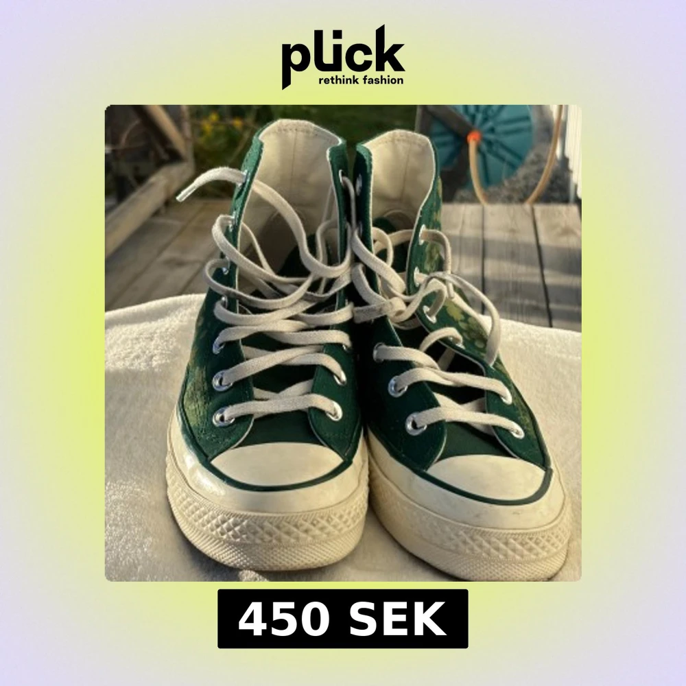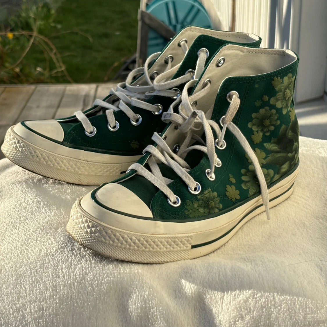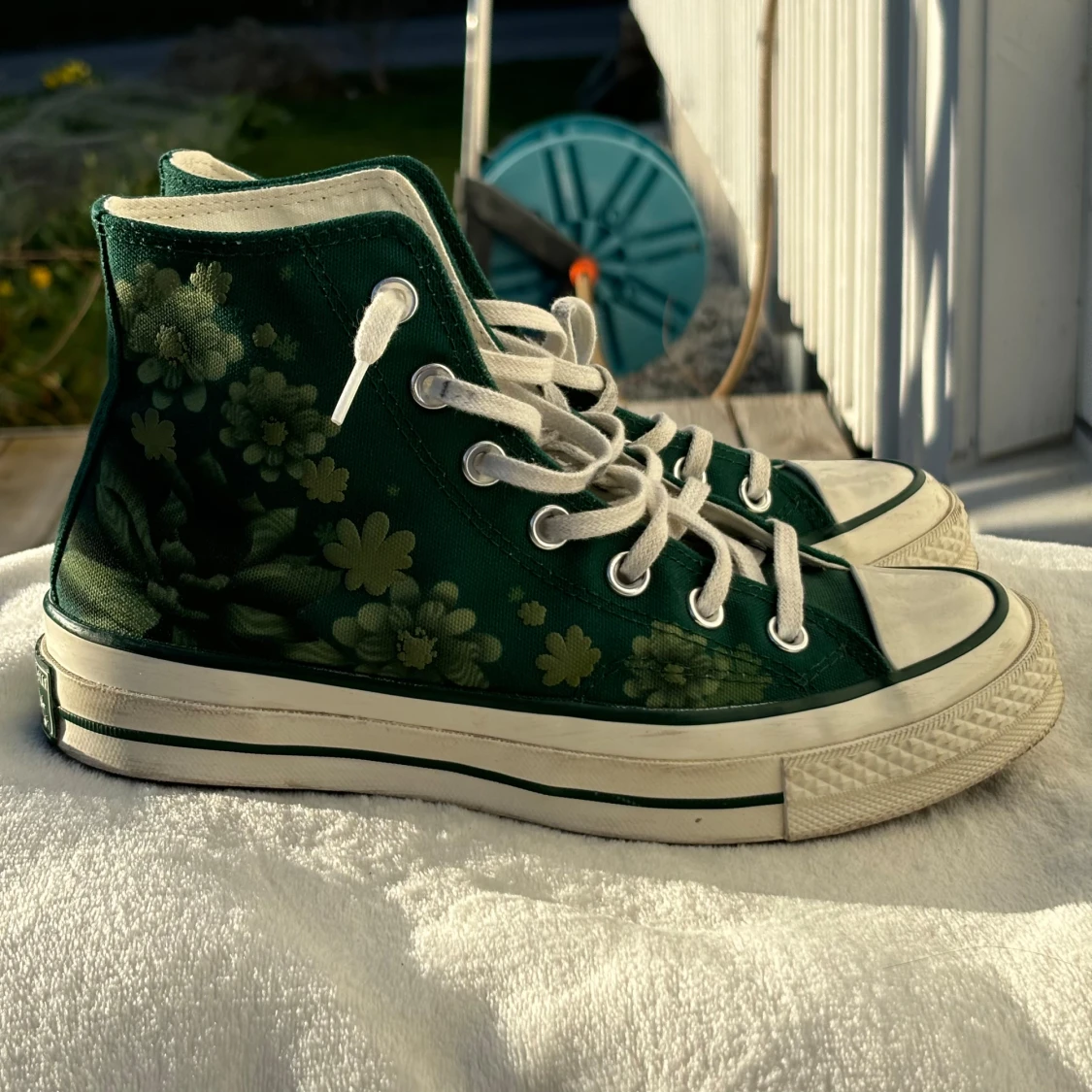 Jättefina, gröna converse med blomstermönster på! Perfekta på våren och inför sommaren! Använda ett fåtal gånger men är i väldigt bra skick. Kan sänka pris vid snabb affär!