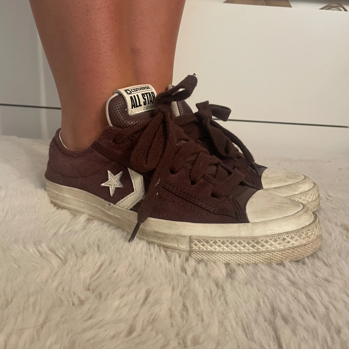 Säljer ett par vinröda Converse sneakers med vit sula och vit stjärndetalj på sidan. Perfekt för dig vill sticka ut med en unik färg. Säljer pga fel storlek men jag älskar dom. De är en aning smutsiga på bilden men innan jag skickar iväg vid köp putsar jag såklart upp dom!❤️❤️ ny pris ligger på ungefär 800🙌🏼😇