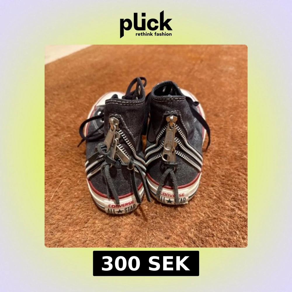 Unika Converse Chuck Taylor All Star high-tops i svart canvas med dubbla dragkedjor bak och klassiska vita tår. Snygga kontrastsömmar, svarta skosnören och röd rand längs sulan. Perfekta för dig som vill sticka ut med detaljer och cool design.