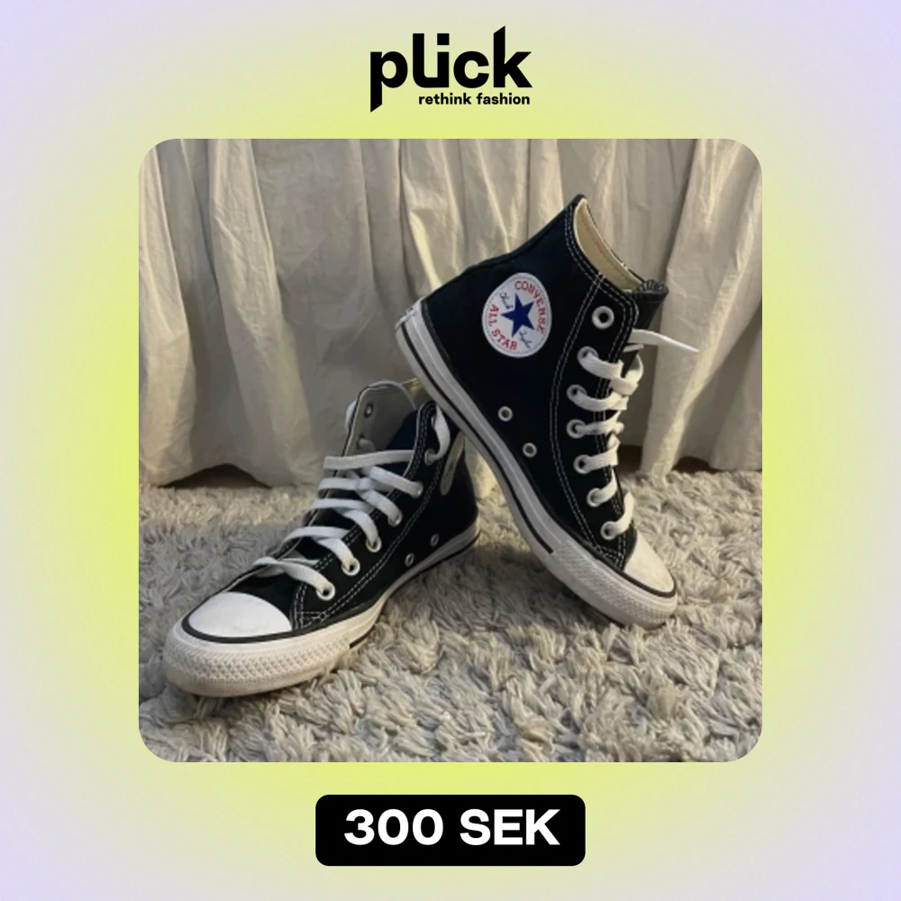 Converse i storlek 37, inga tecken på att de är sönder eller slitna, bara små fläckar på dem vita partierna av skorna och skosnörena är inte helt vita längre
