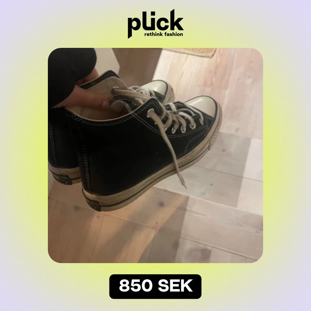 Ett par fina converse med lite högre sula än vanligt! Använd bara ett få par gånger! Går att tvätta banden, resten är superbra skick! Näst intill nya, nypris 1200