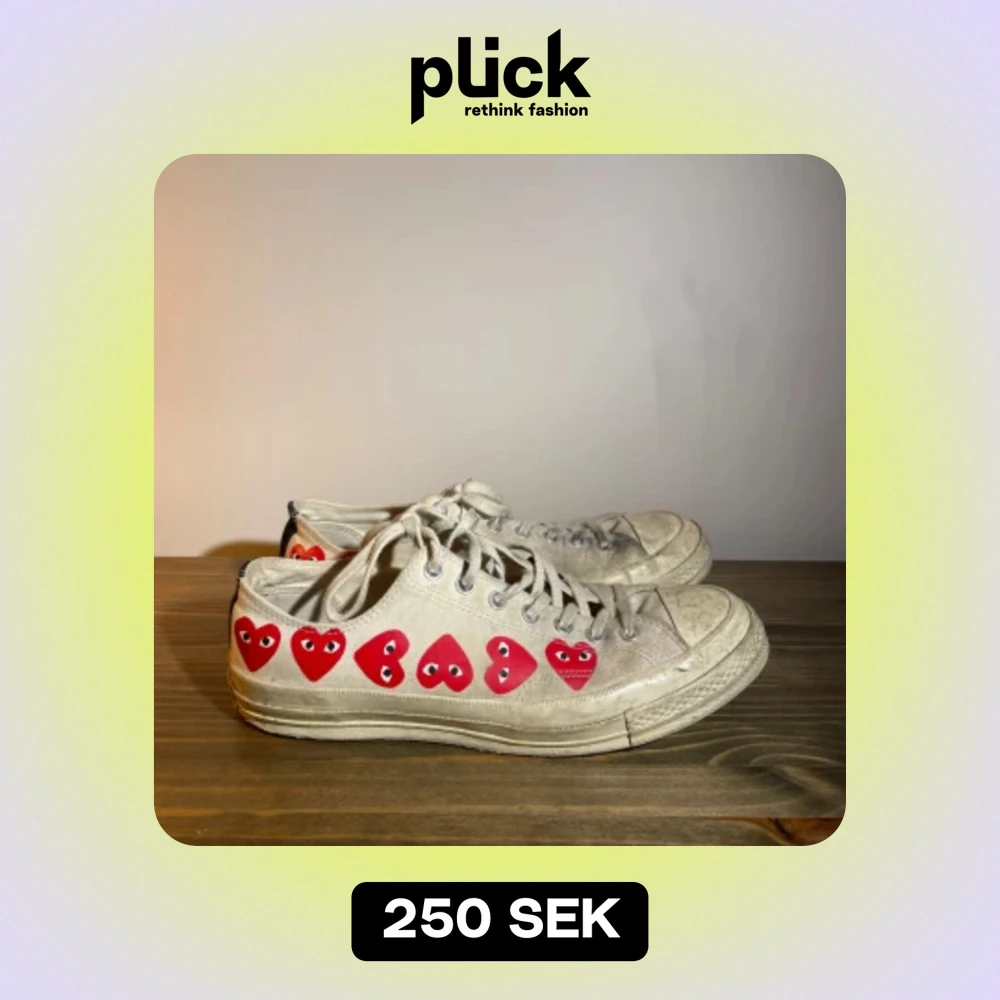 Säljer mina converse x CDG pga av vuxit ur. Skorna är ganska slitna och har enligt bilderna tecken på användning. Kom med bud!