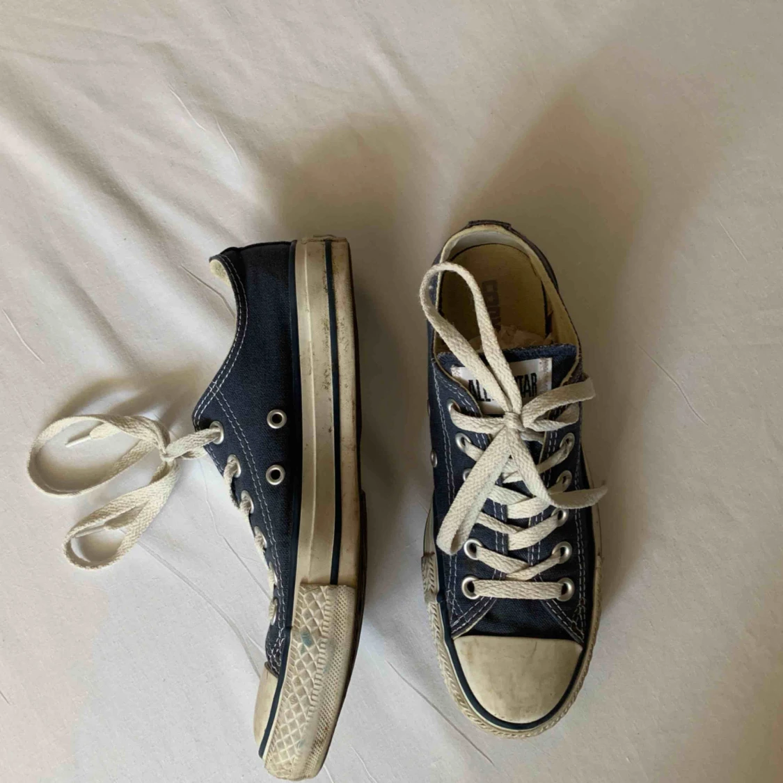 •Blå åga Converse •Måttligt använda men i bra skick •Säljer pga att de ej kommer till användning •Går att tvätta• De vita sulorna är lite smutsiga men det blå tyget är intakt sedan inköpet