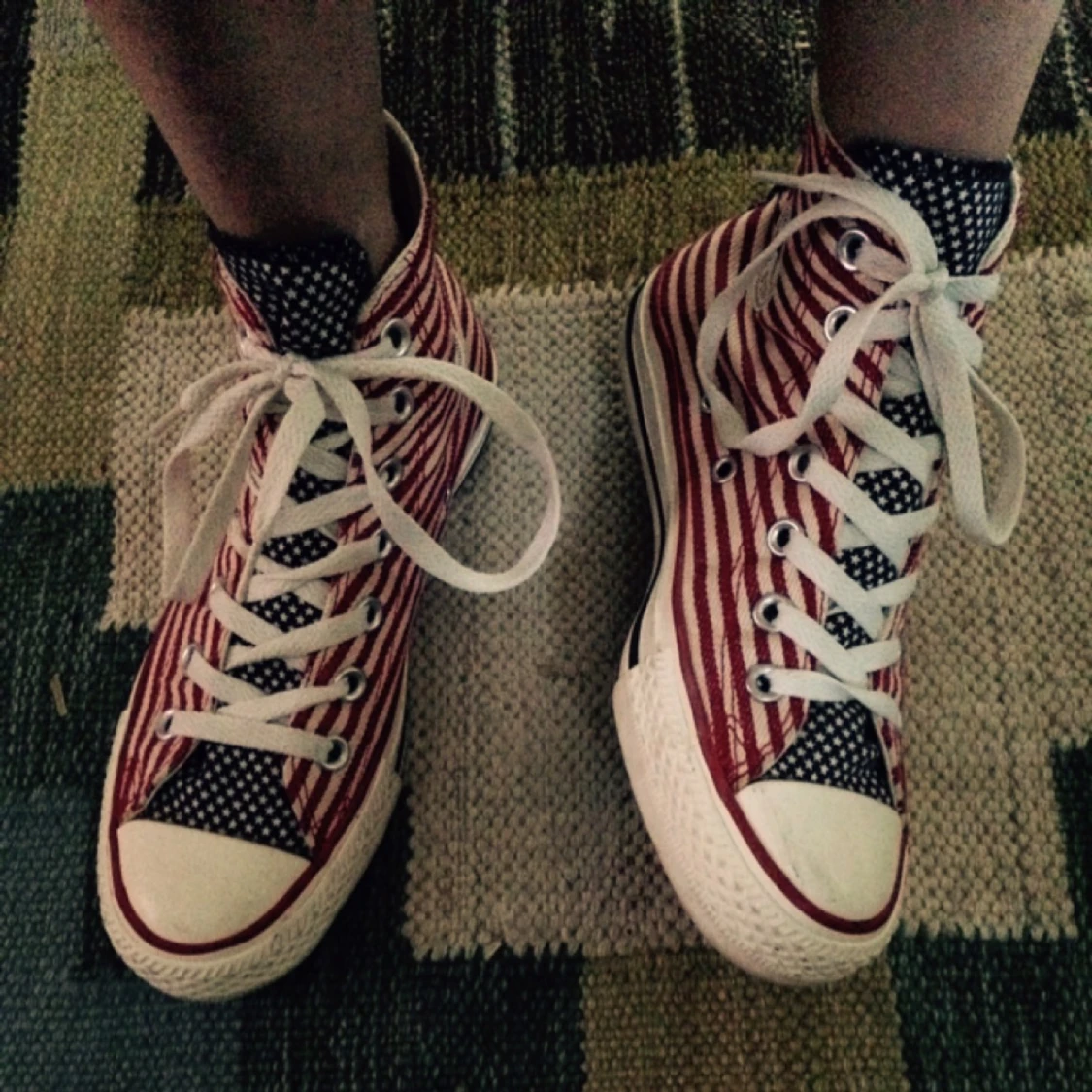 Fina äkta converse. Oanvända. Lite lite missfärgade inuti skon. Storlek 4 (converse-storlek eller vad det kallas) Säljer för 200 kr då de är försmå.