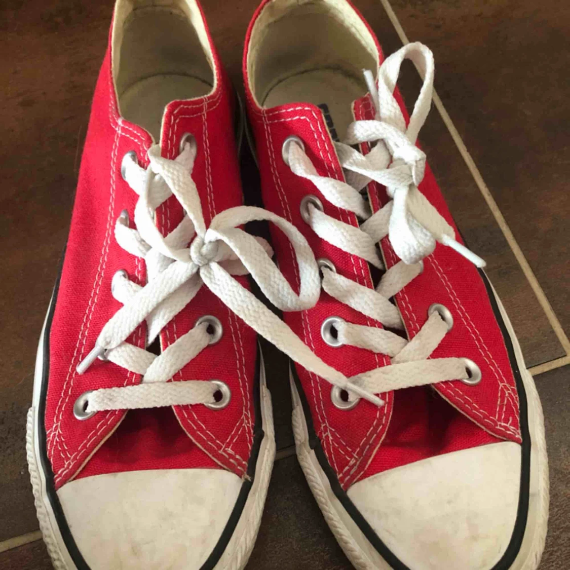 Röda converse i storlek 36.5 Dom ät i väldigt fint skick och är använda ett antal gånger Köpta för ca 400-500kr Kan mötas i nacka eller i slussen. Om köparen vill ha skorna skickade till sig står köparen för frakten:) Betalning sker via swish
