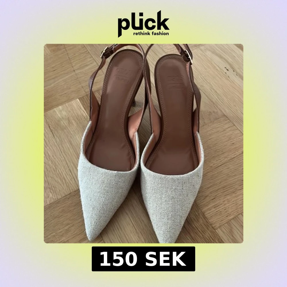Stilrena pumps från COS i beige textil med spetsig tå och smal klack. Skorna har bruna detaljer i skinn och justerbar rem runt hälen. Perfekta för dig som gillar minimalistisk och modern design.