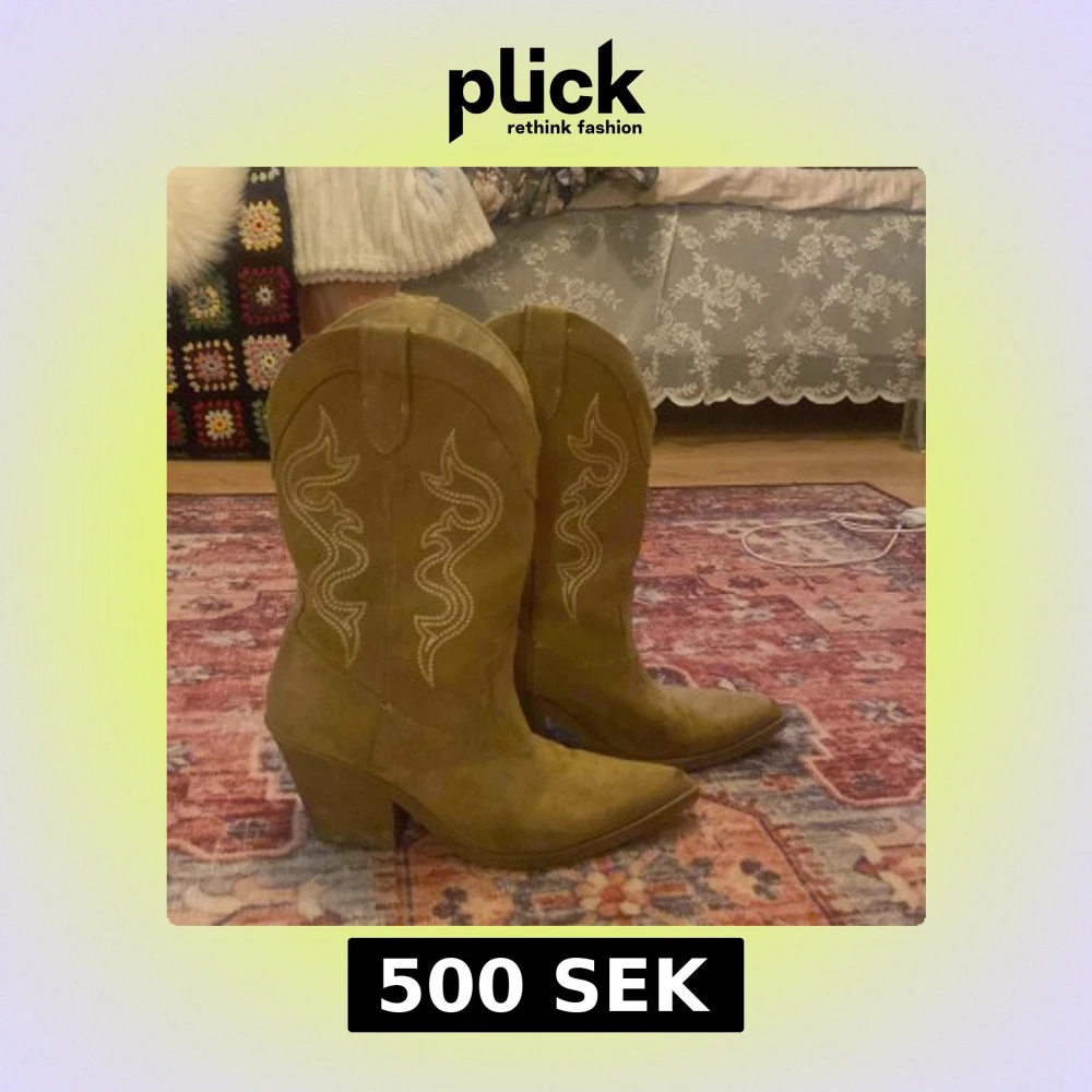 Snygga bruna cowboy boots i mocka med klassisk spetsig tå och broderade detaljer på skaftet. Bootsens höga klack och plattform ger extra attityd och western-vibe. Perfekta för dig som vill sticka ut med en cool och trendig look.