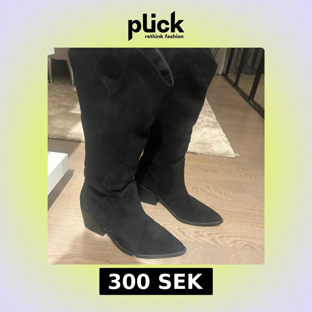 Snygga svarta cowboy boots i mocka med spetsig tå och klack.