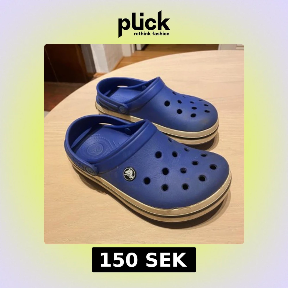 Blå Crocs sandaler med klassisk design, ventilerande hål och vit rand runt sulan. Gjorda i lätt syntetmaterial med justerbar hälrem och Crocs-logga bak. Perfekta för chill dagar eller när du vill ha något bekvämt på fötterna. Storlek 22 centimeter från häl till stortå.