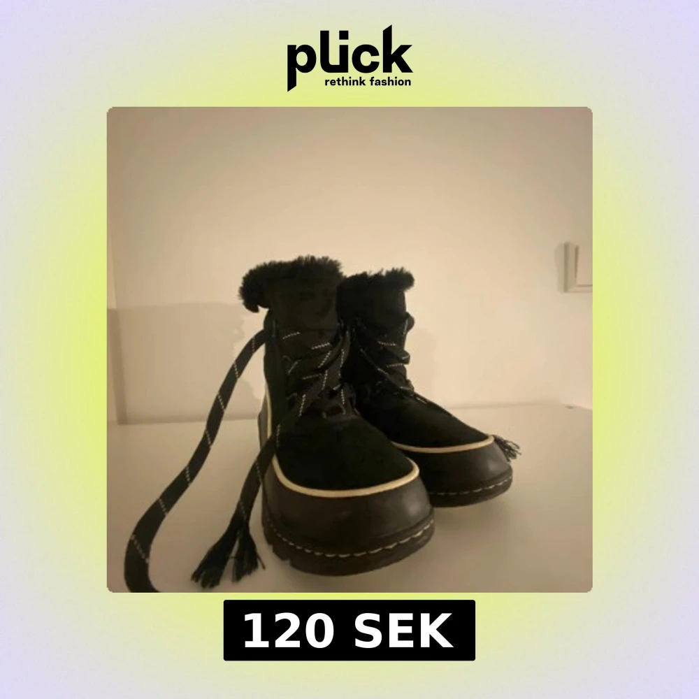 Säljer ett par svarta vinterstövlar från Sorel med snörning och fluffig kant. Perfekta för kalla dagar med sin robusta design och varma foder.
