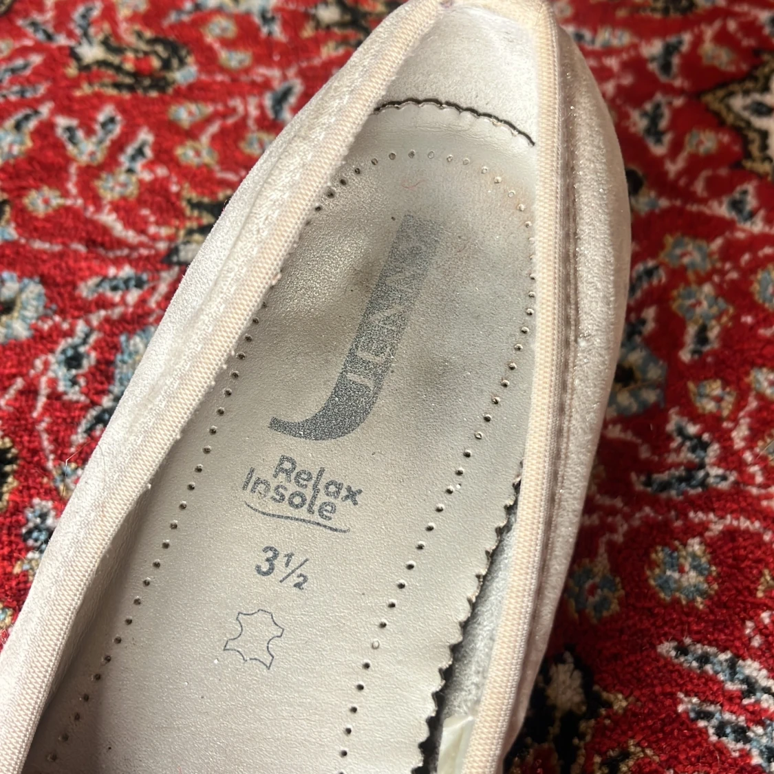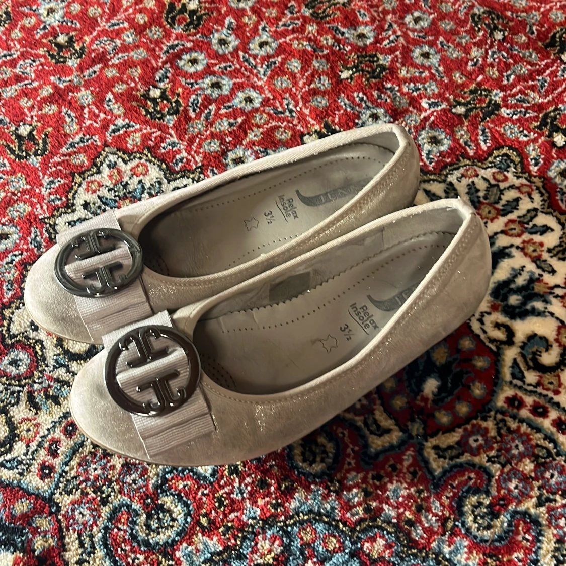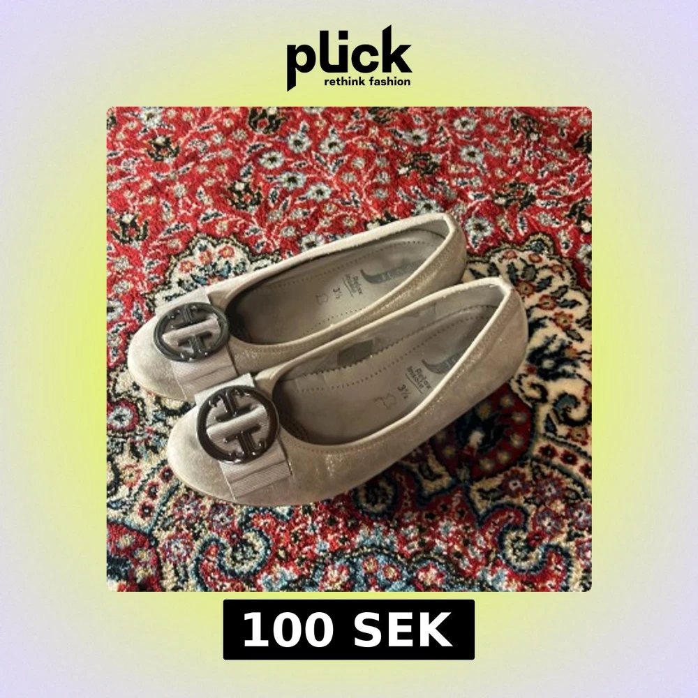 Snygga beige ballerinaskor från Jana med ett stort dekorativt spänne framtill. Skorna har en bekväm relax insole och är perfekta för en stilren look.