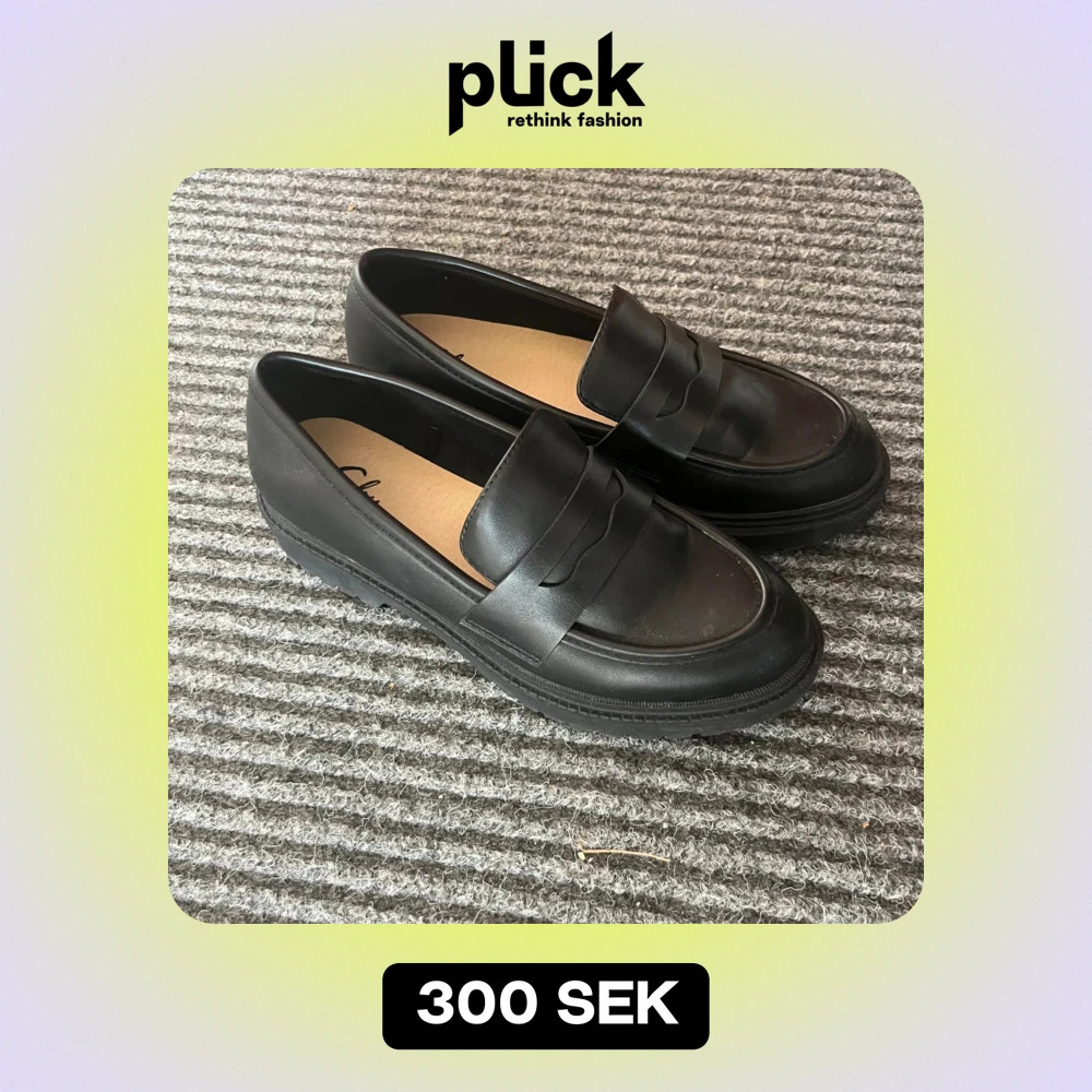 Snygga svarta loafers i skinn, perfekta för både vardag och fest. De har en klassisk design med en bred rem över foten och en robust sula för extra komfort. Skorna är i nyskick och redo att användas direkt. Passar perfekt till både jeans och klänning!