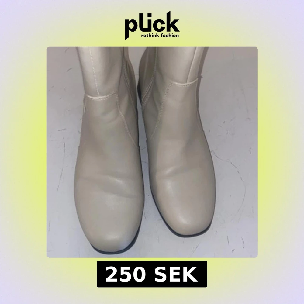 Säljer ett par stilrena beige chelsea boots från Wavy i skinn. Skorna har svart resår på sidorna och låg klack. Perfekta för dig som vill ha en klassisk look med modern touch.