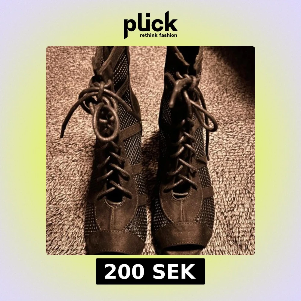 Snygga svarta boots med snörning och klack (ca 7cm). Skorna har ett nätliknande mönster och är tillverkade i mocka. Perfekta för en trendig look.