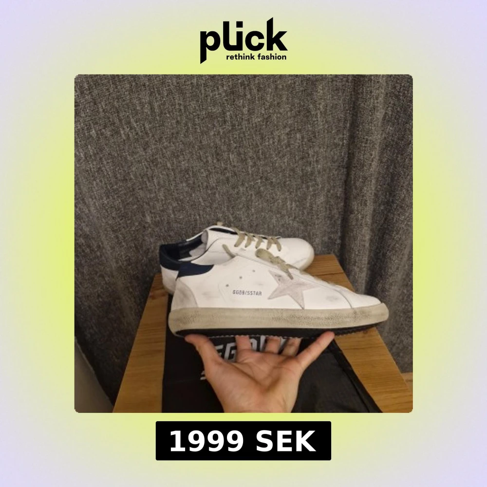 Snygga vita sneakers från Golden Goose med en stjärndetalj på sidan. Skorna har grå snörning och en mörkblå häl. Perfekta för en stilren look i stl 42 priset är inte hugget i sten.