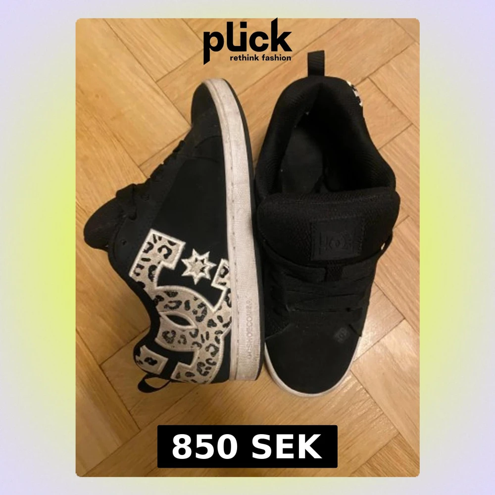 Säljer ett par svarta DC sneakers med fet snörning och vit platt sula. Perfekt för dig som gillar streetstyle och unika detaljer. Bra skick använt få gånger. Pris kan diskuteras