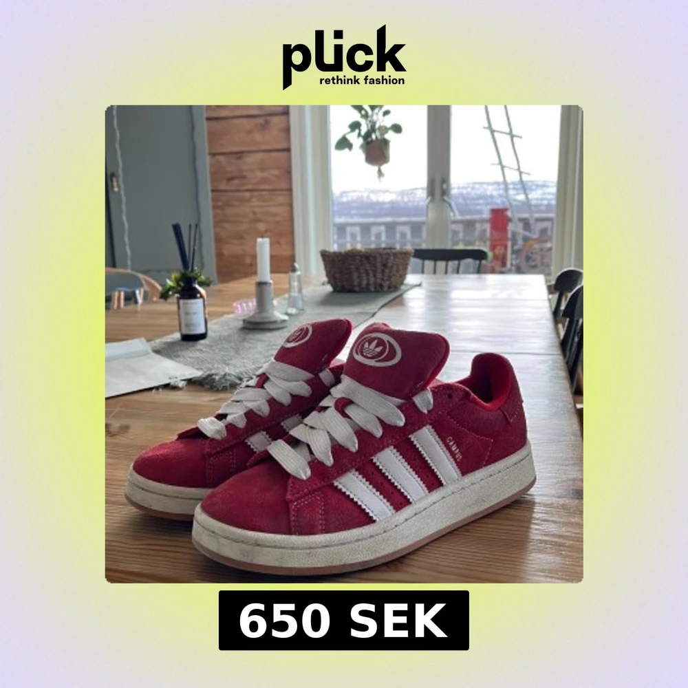 Säljer ett par röda Adidas Campus sneakers. Skorna är lite smutsiga men inget tydligt som man märker och de går att tvätta. Jag säljer då jag inte använder dom längre