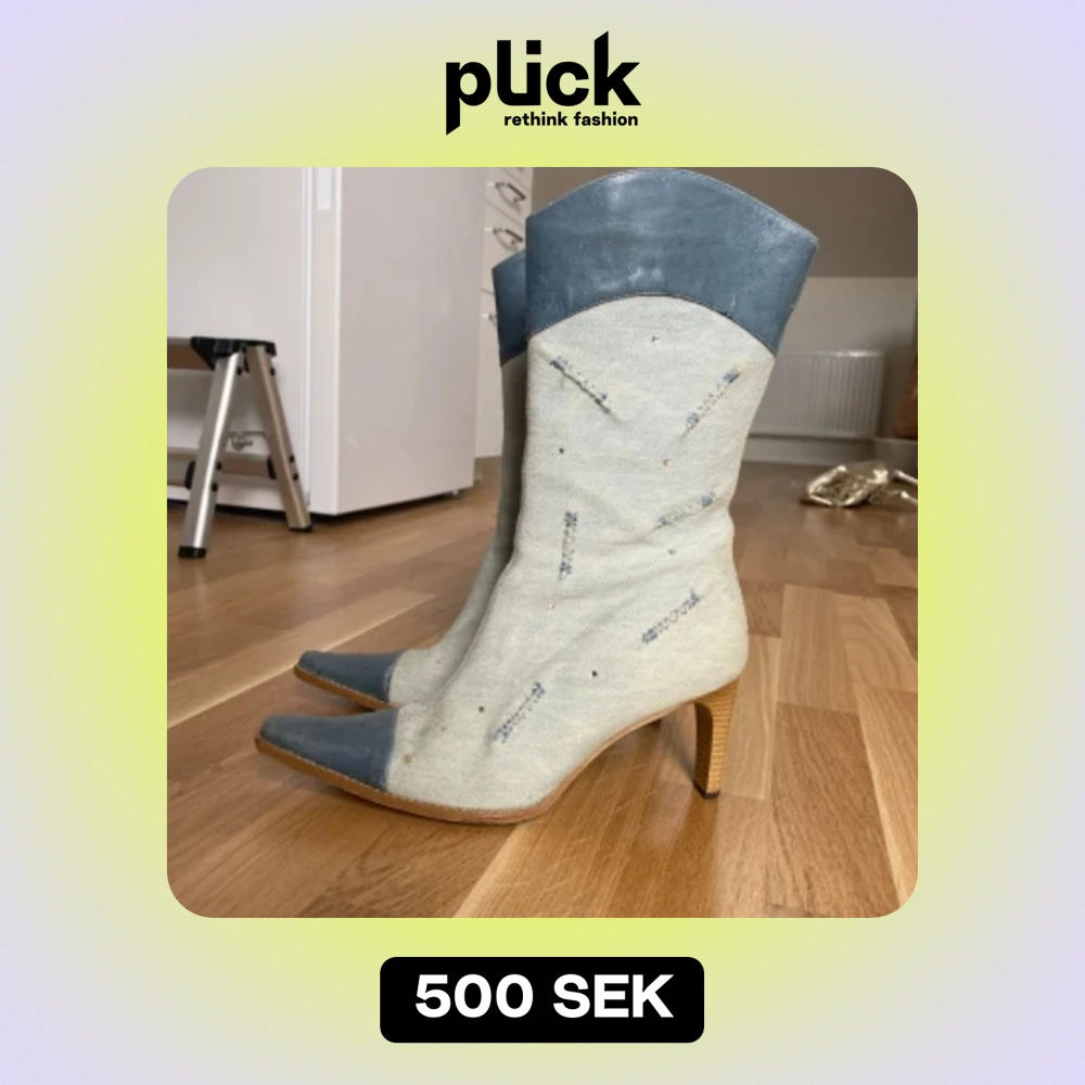 Denim boots med rhinestones