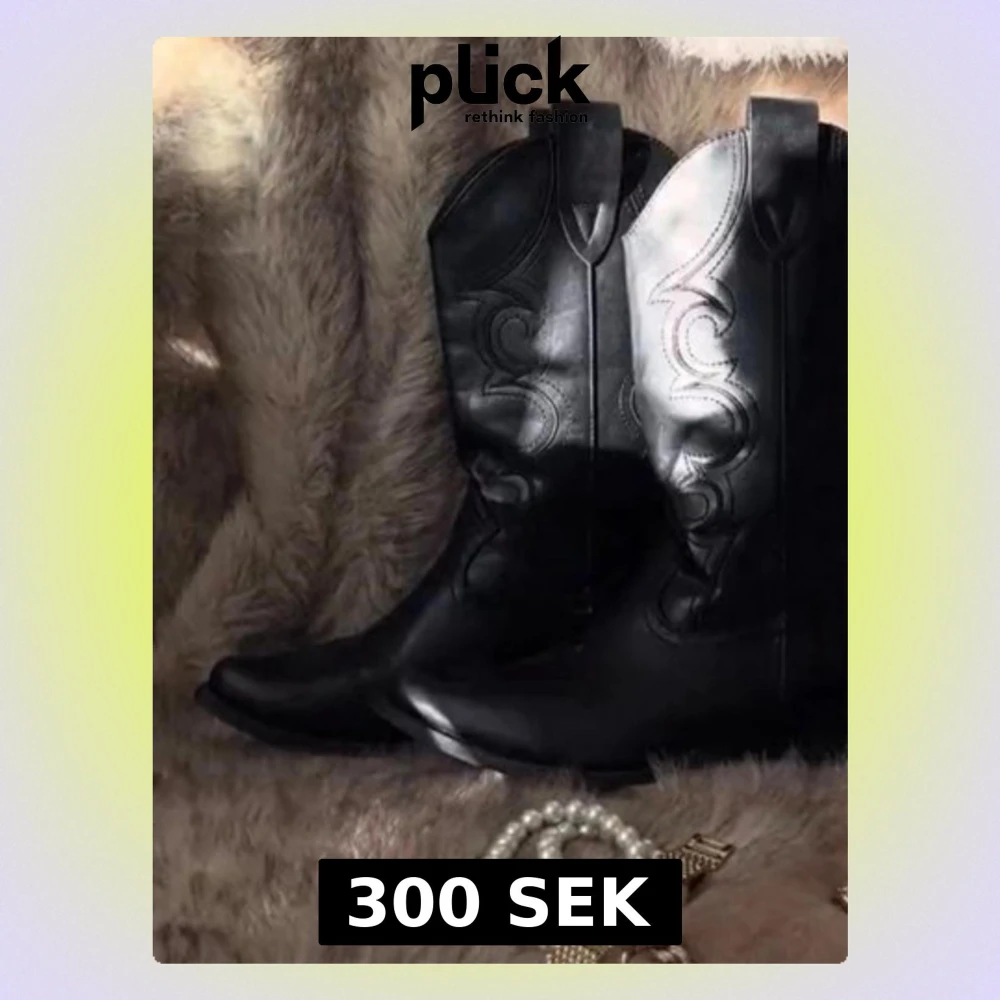 Säljer ett par svarta cowboy boots med snygga broderade detaljer och spetsig tå.