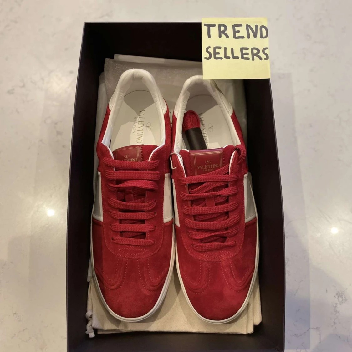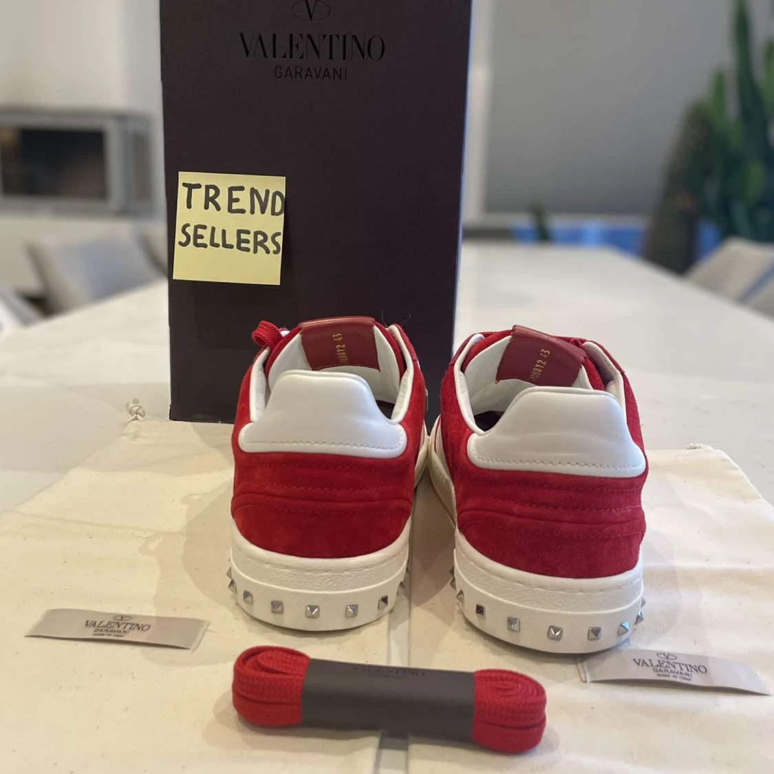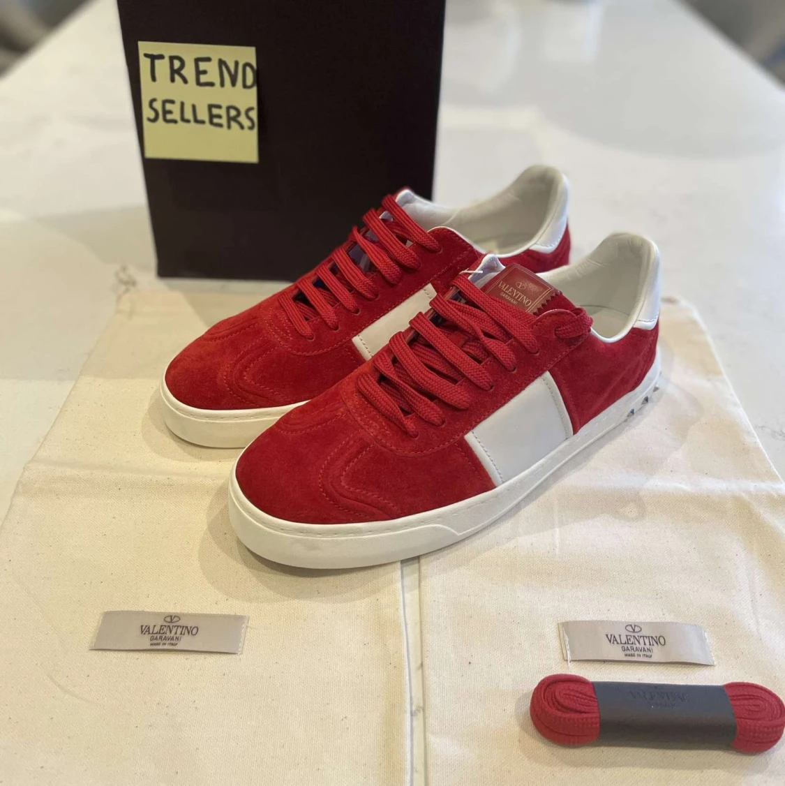 Första produkten till försäljning! Valentino Flycrew. Vi har skon i flera storlekar. 39, 40, 41, 42, 43 och 45. Skorna är helt nya och kommer i låda med två dustbags och ett par extrasnören. Eventuella frågor? Bara att fråga på. /Trendsellers.