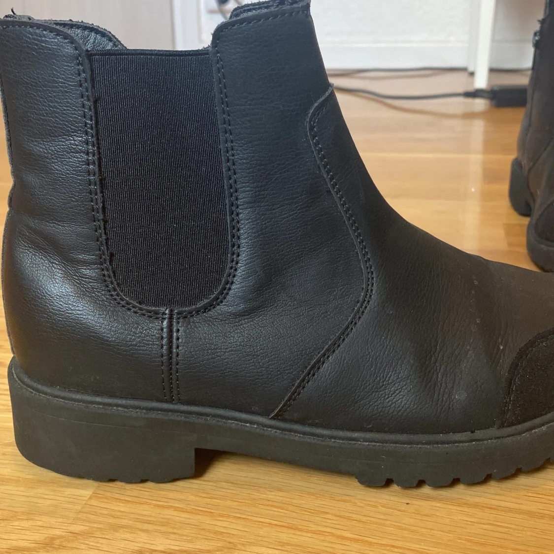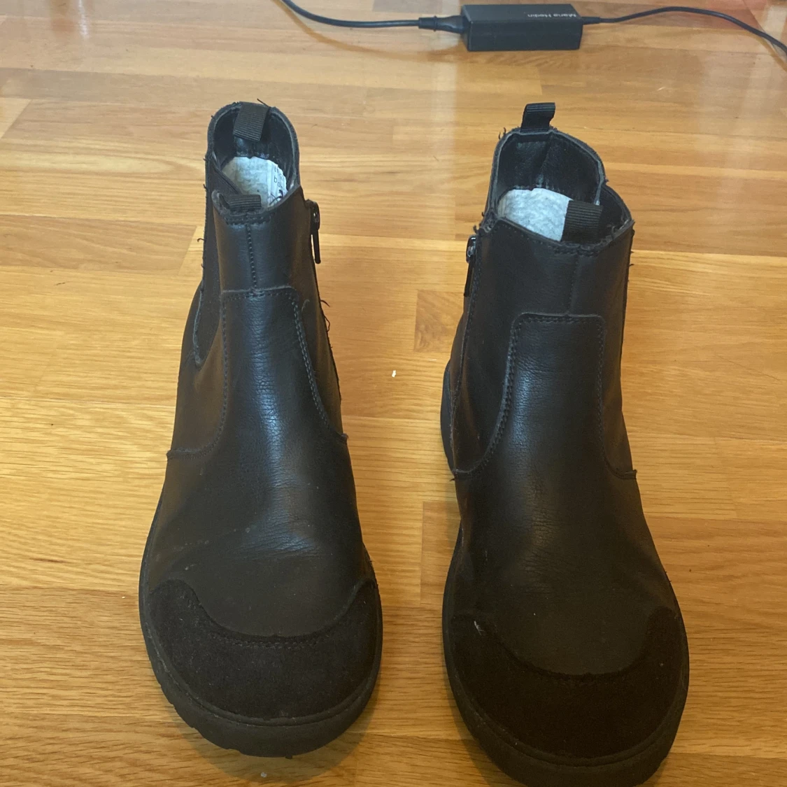 Svarta skor i storlek 36 från din sko. Är lite slitna på sidorna men annars i gott skick. Använda ganska mycket.