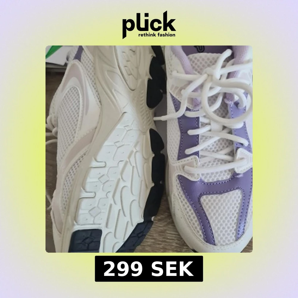 Snygga sneakers i vitt och lila med coola detaljer. Ovandelen är i mesh och syntet, vilket ger en sportig vibe och bra andningsförmåga. Skorna har snörning och en chunky sula med svarta detaljer undertill. Perfekta för dig som gillar en fräsch och trendig look. Bara testad