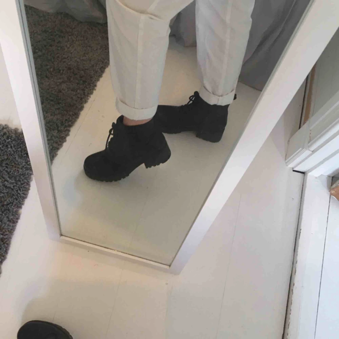 Suuperfina svarta skor med snörning i skinimmitation. Endast använda 2 gånger, säljer eftersom de har blivit försmå. De har en dragkedja på insidan och är i superbra skick