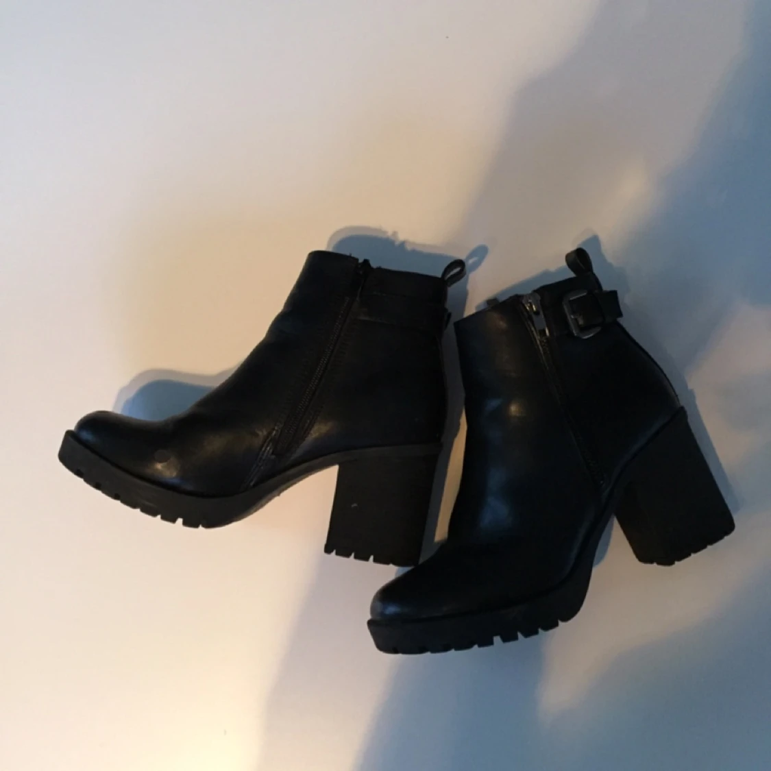 En svart lite finare sko som jag använt som höst/vinterskor. dom är i använt skick men är lite nötta men inget som syns och stör! På yttre sidan av skon finns det ett fint spänne och dragkedja som detalj. Köparen står för frakten👢🍃