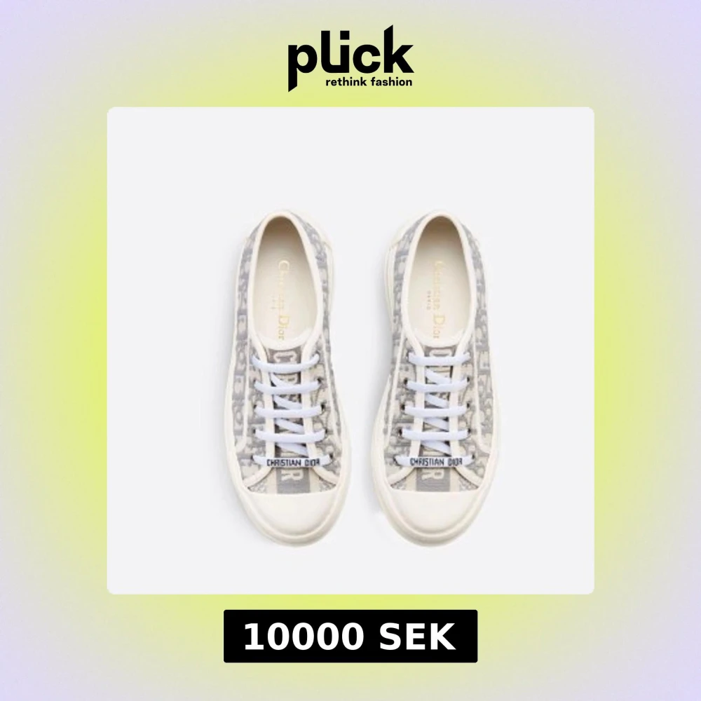 Säljer ett par snygga sneakers från Christian Dior med gråvitt mönster och tydlig logga på tungan. Skorna har vita snören och en platt sula. Perfekta för dig som gillar stilrena och exklusiva detaljer.