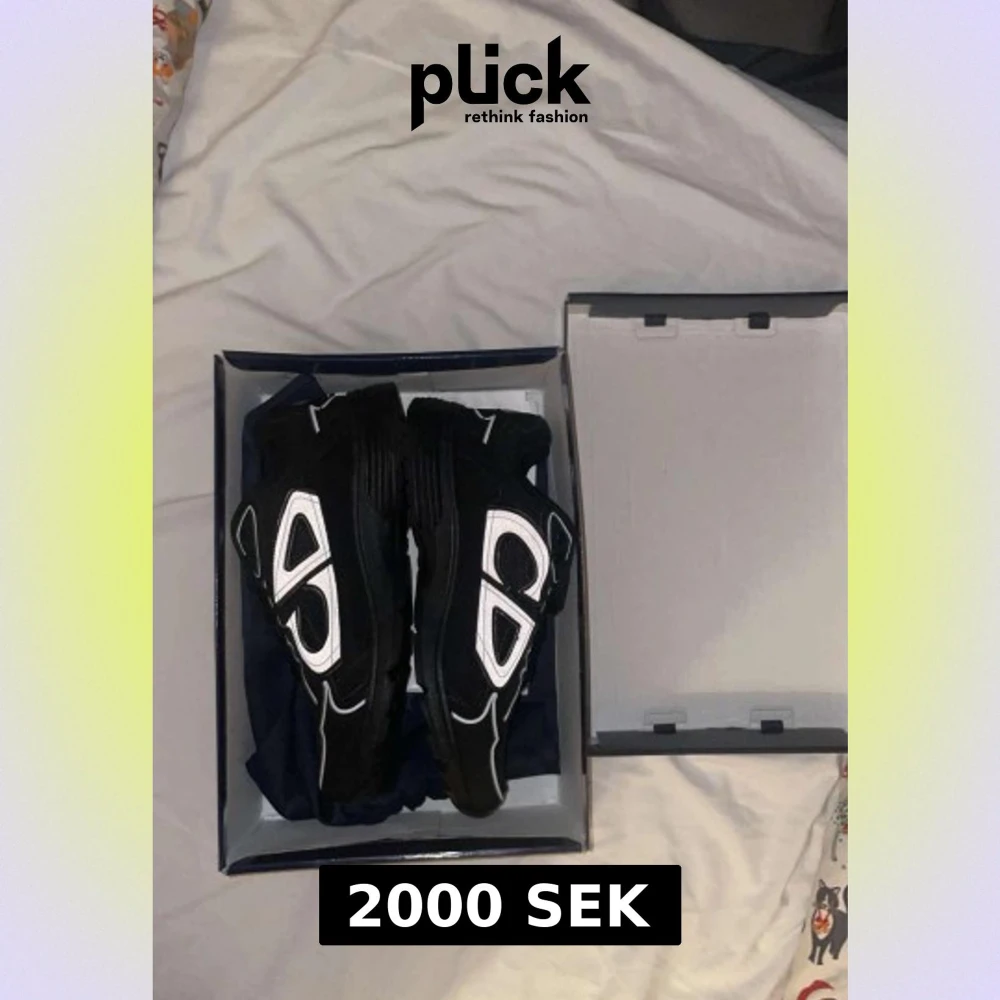 Säljer ett par svarta Dior sneakers med vit och silverfärgad logga på sidorna. Skorna har snörning, platt sula och rund tå. Materialet är en mix av mesh och syntet med coola kontrastdetaljer. Perfekt för dig som gillar statement pieces och exklusiv streetwear.