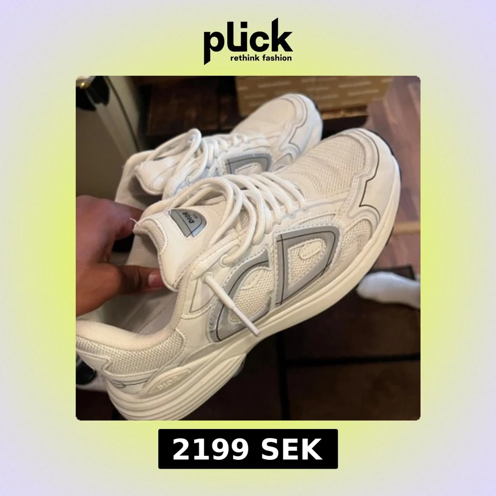 Snygga vita Dior sneakers med stora CD-detaljer på sidan och silvriga inslag. Tveka inte på att höra av er vid frågor eller andra bekymmer 🙌