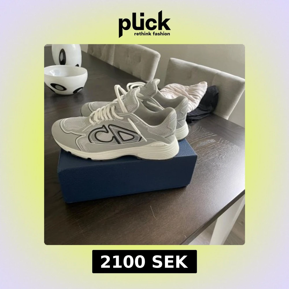 Säljer ett par gråa Dior sneakers med vit sula och stora svarta CD-detaljer på sidan. Skorna har snörning och är tillverkade i en kombination av mesh och syntetmaterial. Perfekta för dig som gillar stilrena och exklusiva sneakers. Stolek 45 men passar perfekt om du har Strolek 44 då jag har de , använda ca 4-5 gånger .