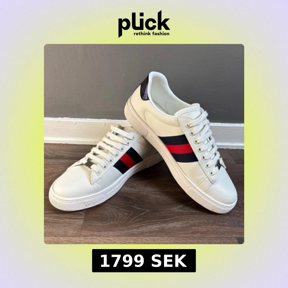 Gucci Ace // storlek 42 // använda en gång // pris 1799 // tveka inte på att höra av er vid frågor eller funderingar!