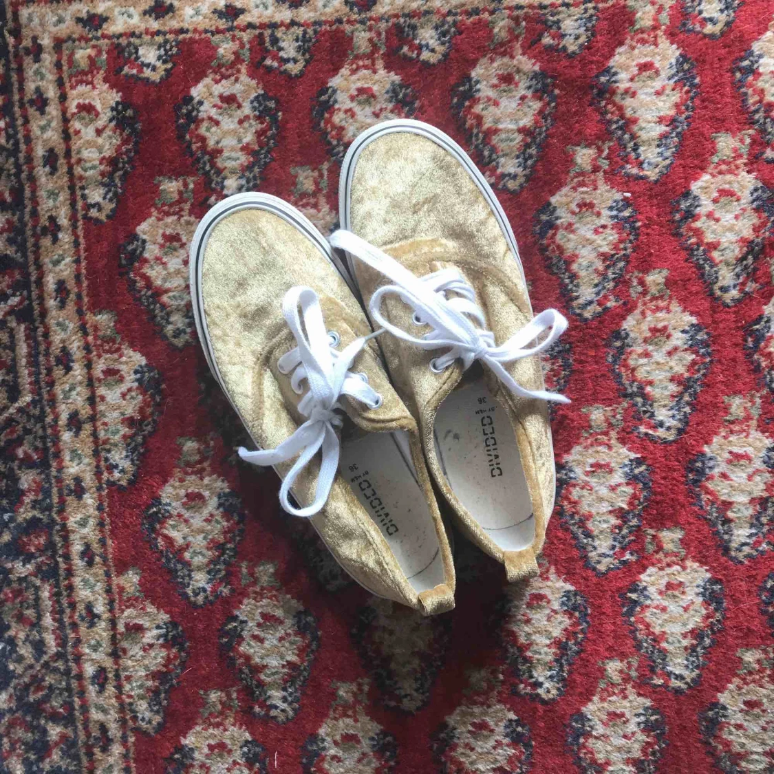 GYLLENE SKOR! Supersöta tygskor från HM. Guldigt velvet-tyg som LYYSER 😍. Känner mig så kort när jag använder dom annars hade jag definitivt behållt dom själv. Priset kan diskuteras.