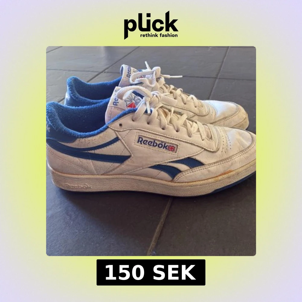 Klassiska Reebok sneakers i vitt skinn med blå detaljer och logga på sidan och hälen. Skorna har snörning, rund tå och platt sula. Insidan är fodrad med blå textil för extra komfort. Perfekta för dig som gillar retrostil och sportig vibe.