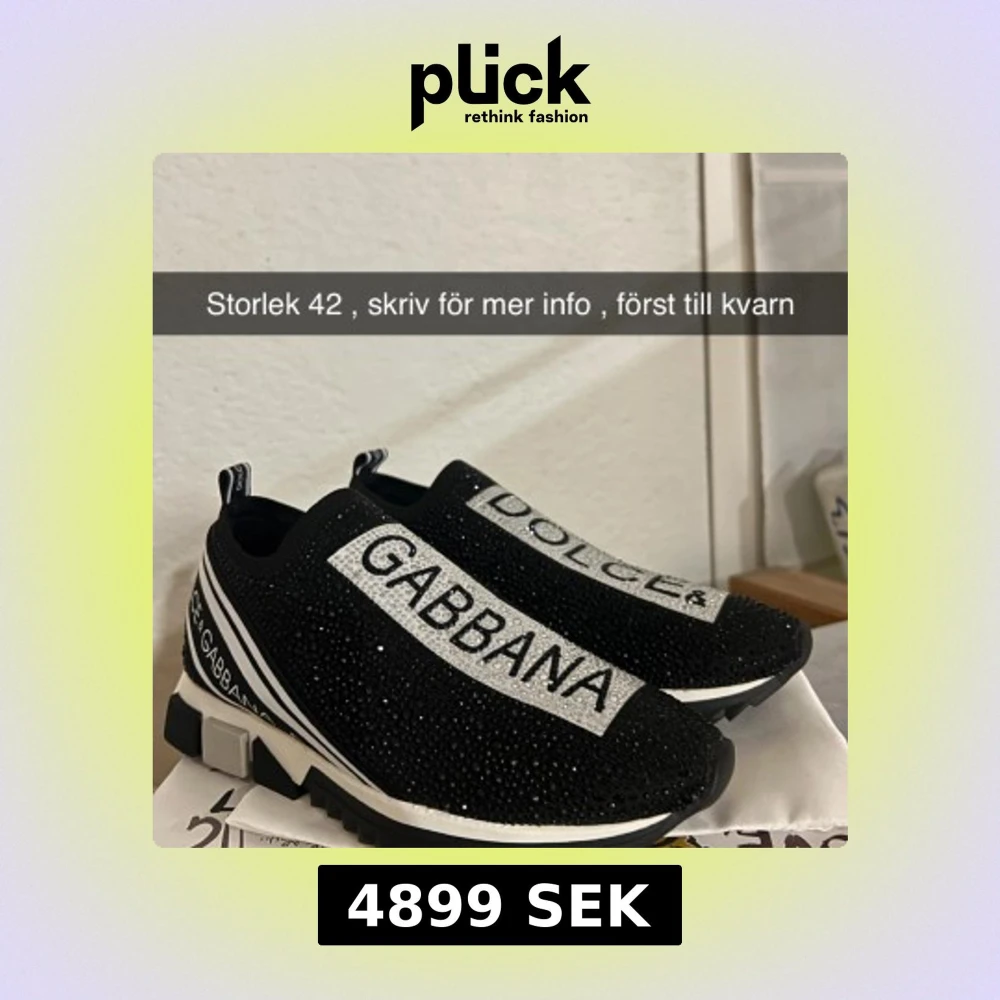 Säljer ett par svarta Dolce & Gabbana sneakers med glittriga detaljer och tydlig logga på ovansidan. Skorna har en chunky sula i svart och vitt, elastisk ovandel och coola ränder på sidorna. Perfekta för dig som vill sticka ut med stil. Priset går att dikutera , skriv för info, helt nya