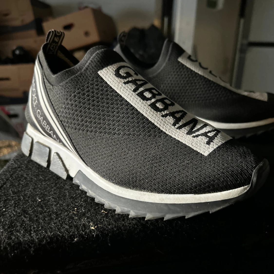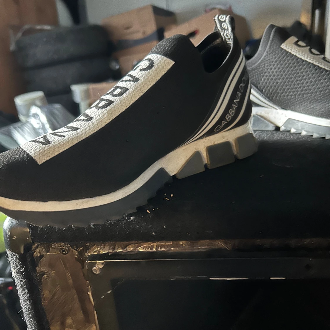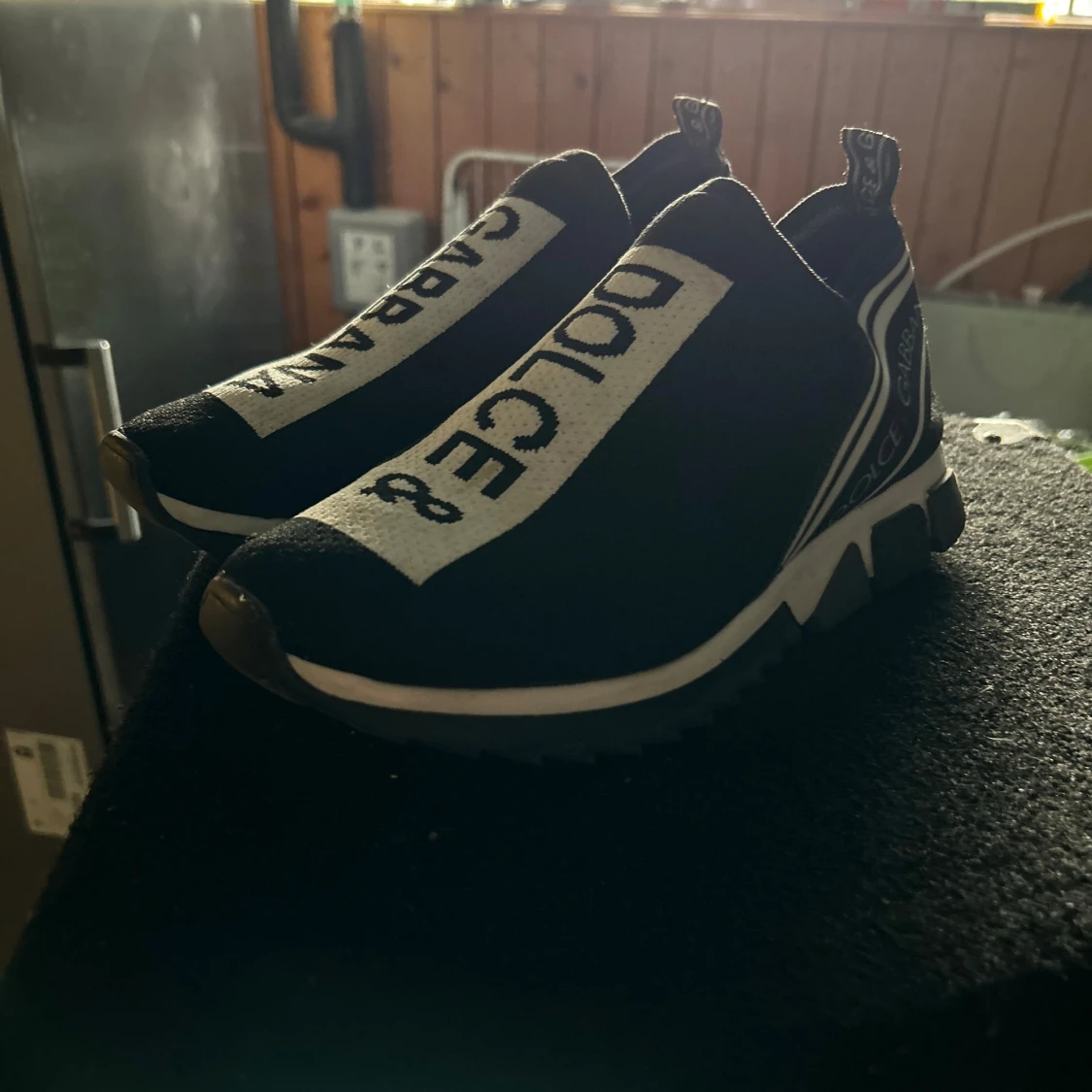 sneakers från Dolce & Gabbana i stolek 43 passar även 42 skorna är i väldigt bra sick andvända några gånger ändats pris kan diskuteras vid snabb affär och smidig affär