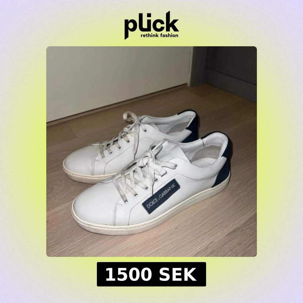 Snygga vita sneakers från Dolce & Gabbana med marinblå detaljer på hälen och logga på sidan